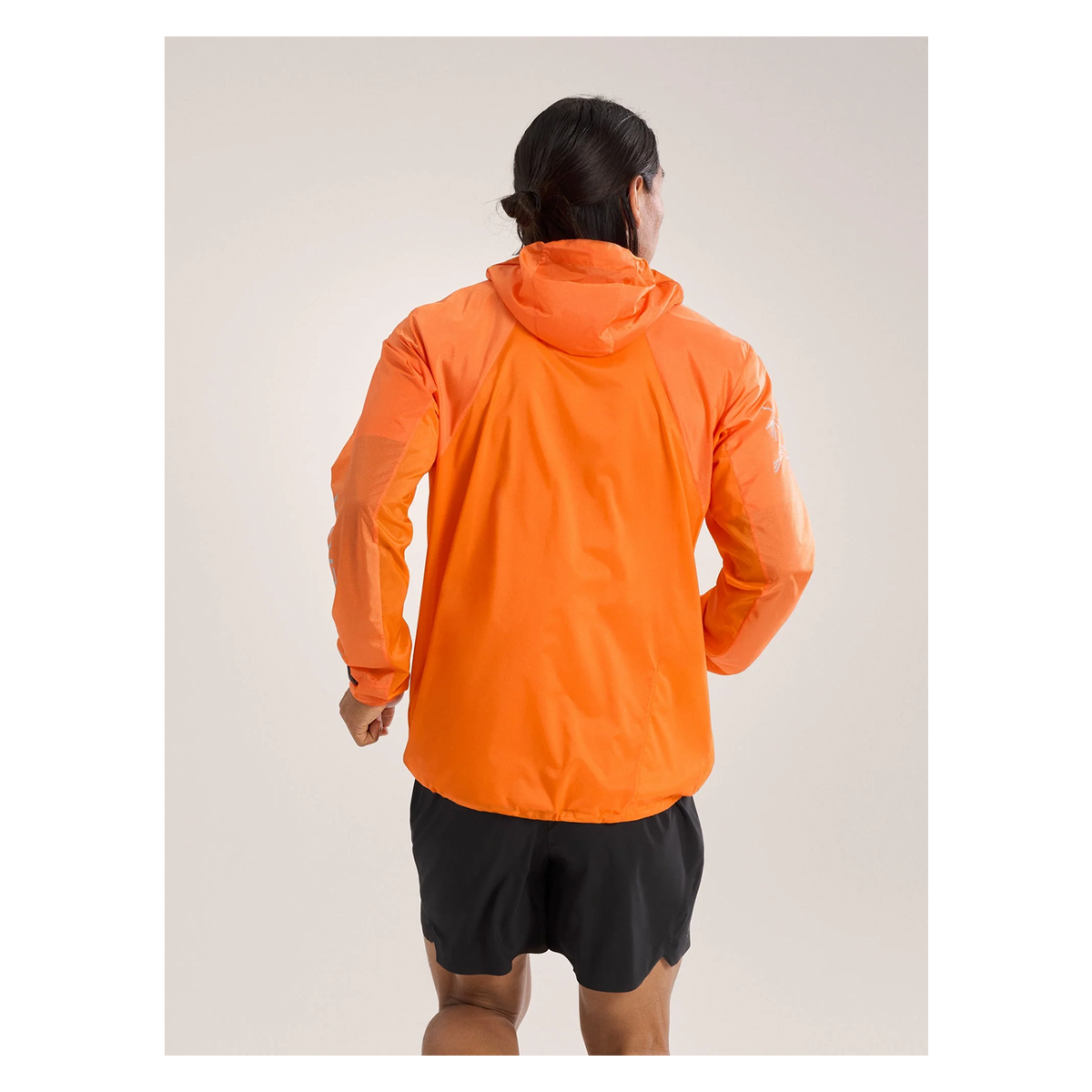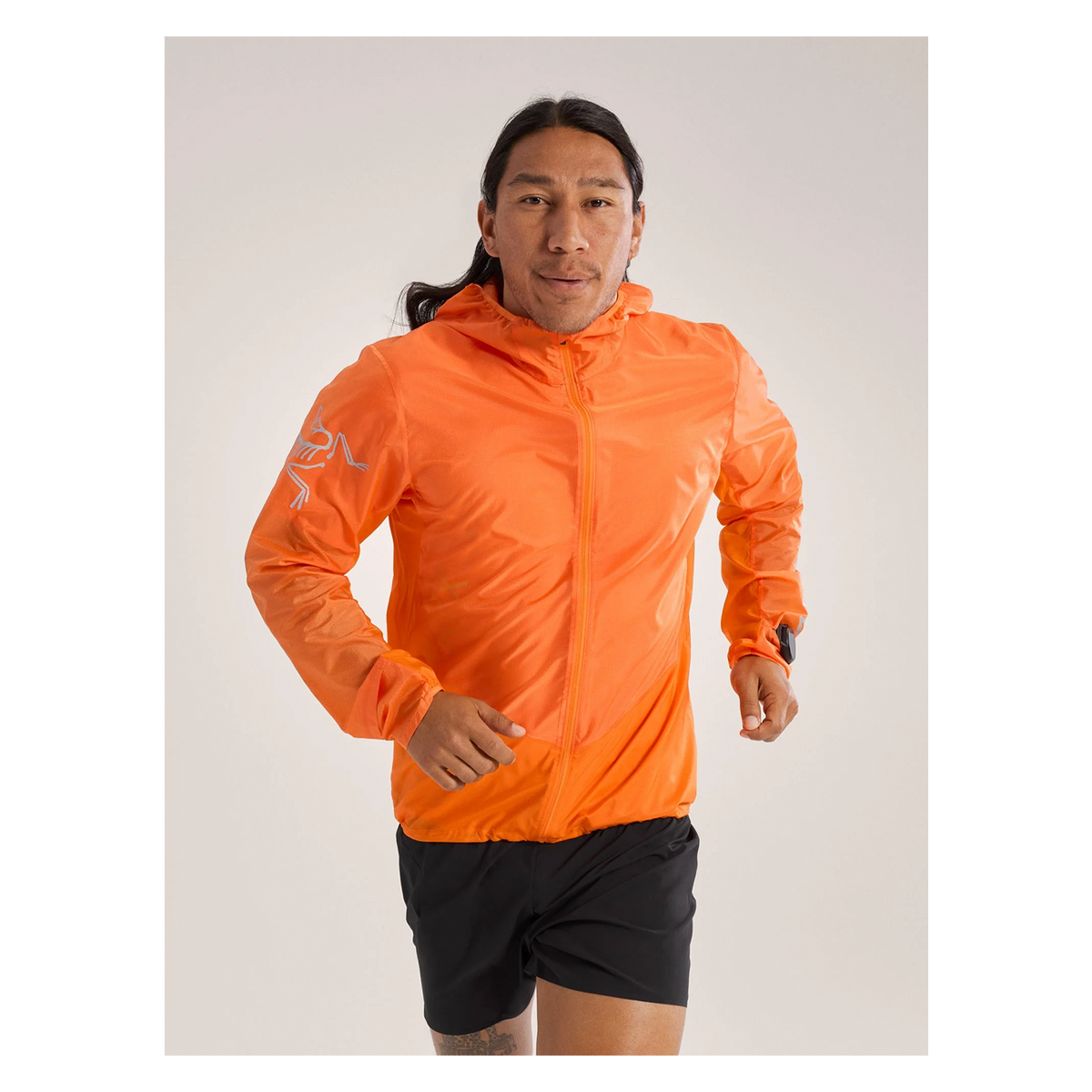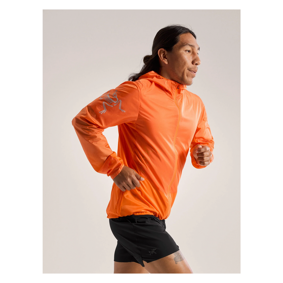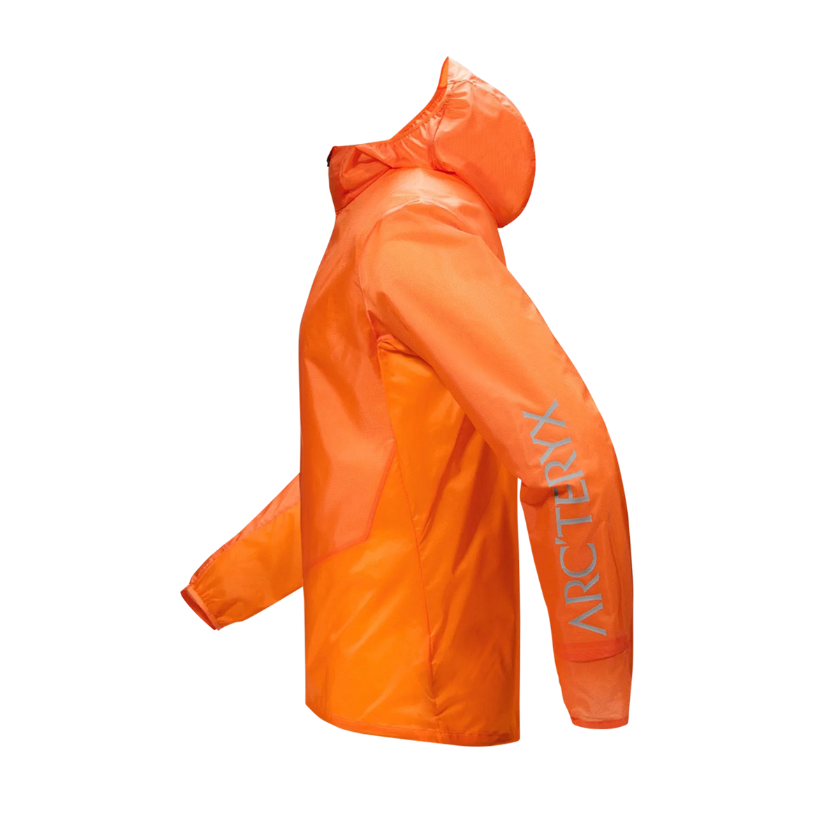 Arc'teryx's lightest, most air-permeable mountain running hoodie protects you on exposed trails and prepares you for shifting conditions. Its Canim ripstop fabric resists wind and moisture, Permair 20 panels ventilate, a streamlined adjustable hood extends protection, and – packed into its pocket – it travels virtually unnoticed. Until you need it.