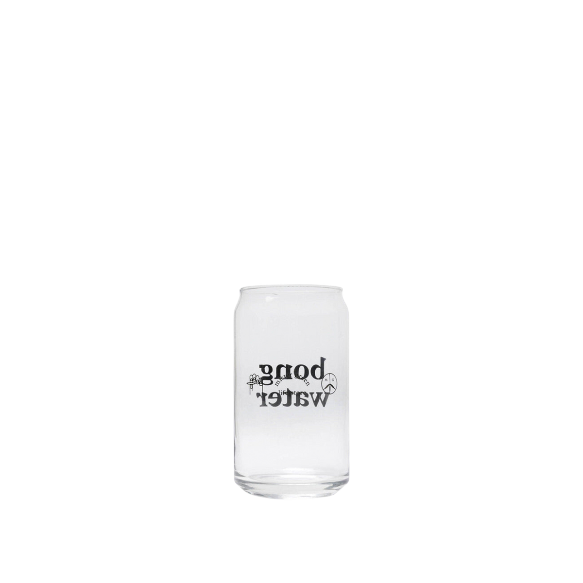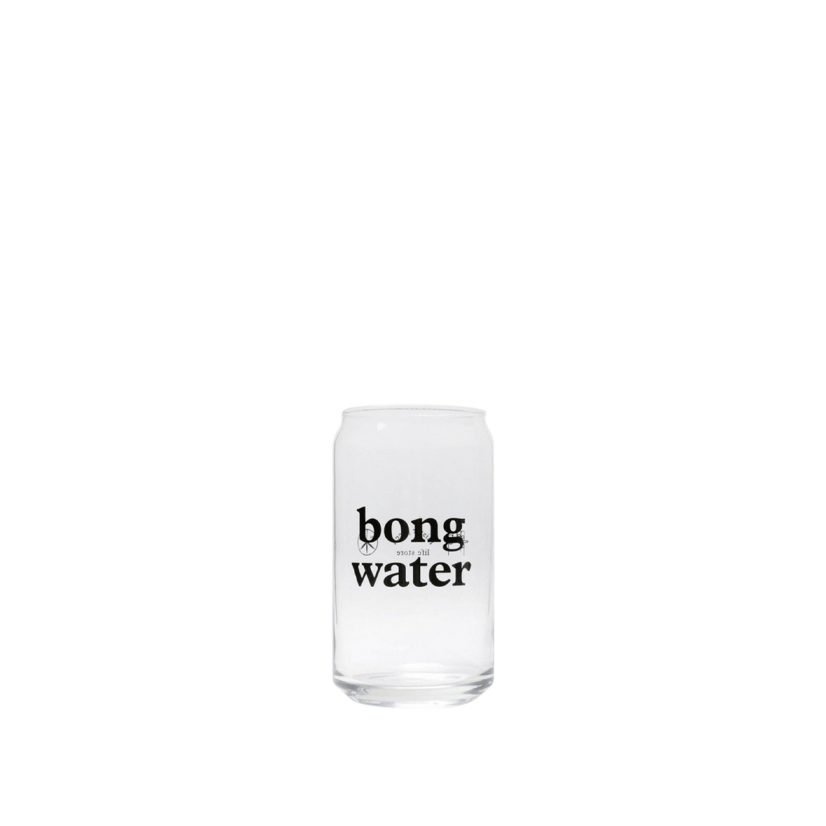 16oz can shaped glass with Bong Water print on one side, and Mister Green trifecta logo on the other.