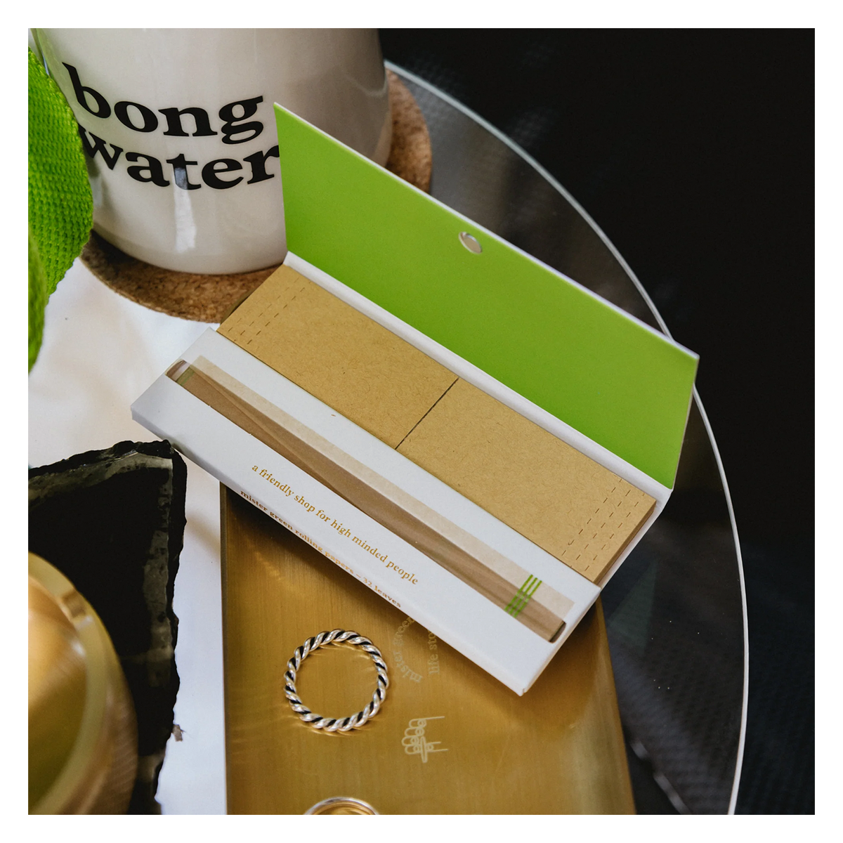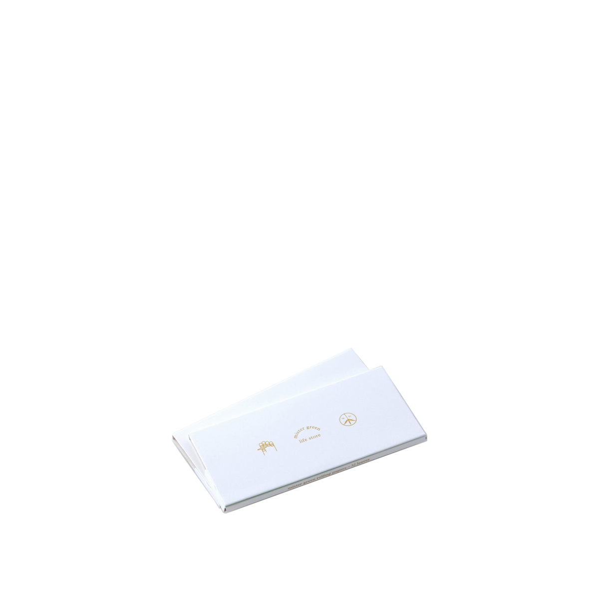 Mister Green papers feature a gold stamped trifecta logo on white booklet. Custom printed papers with vegetable ink. Magnetic closure. King size with roaches included.