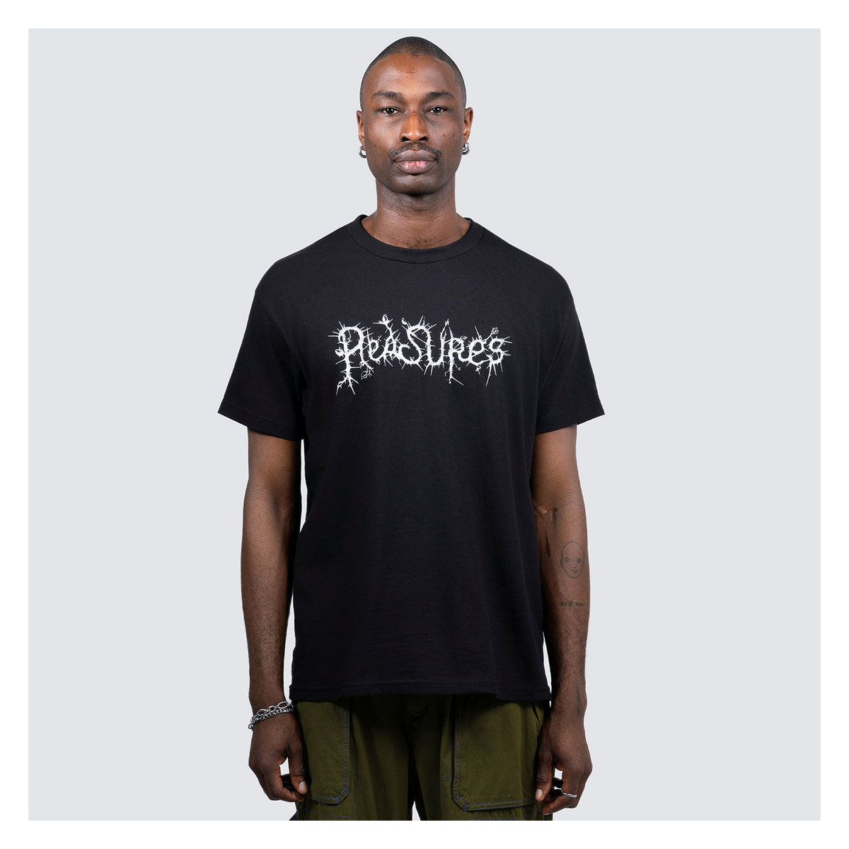 This classic tee from Pleasures is cut from pure cotton to a relaxed fit, and features a Pleasures logo graphics screen printed on the front and rear.