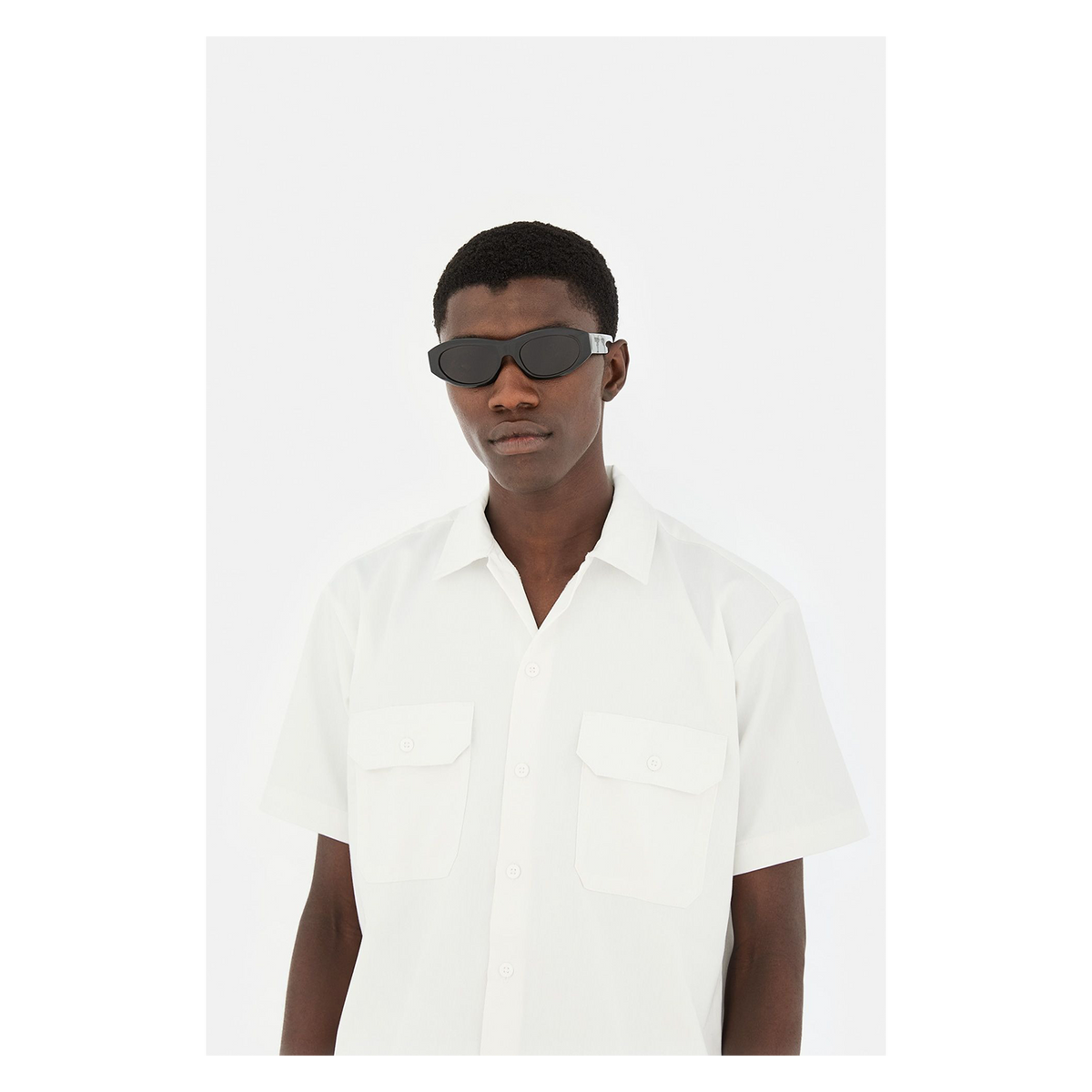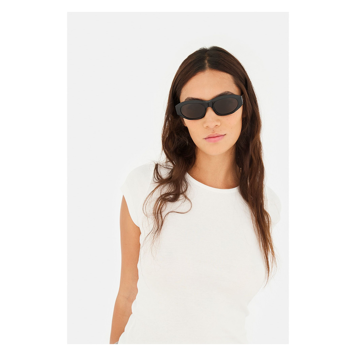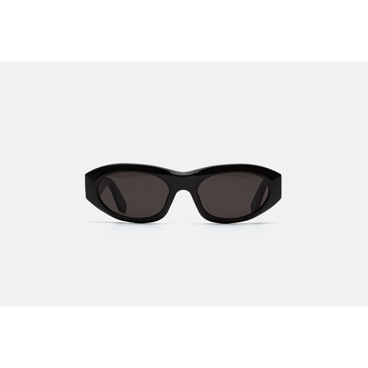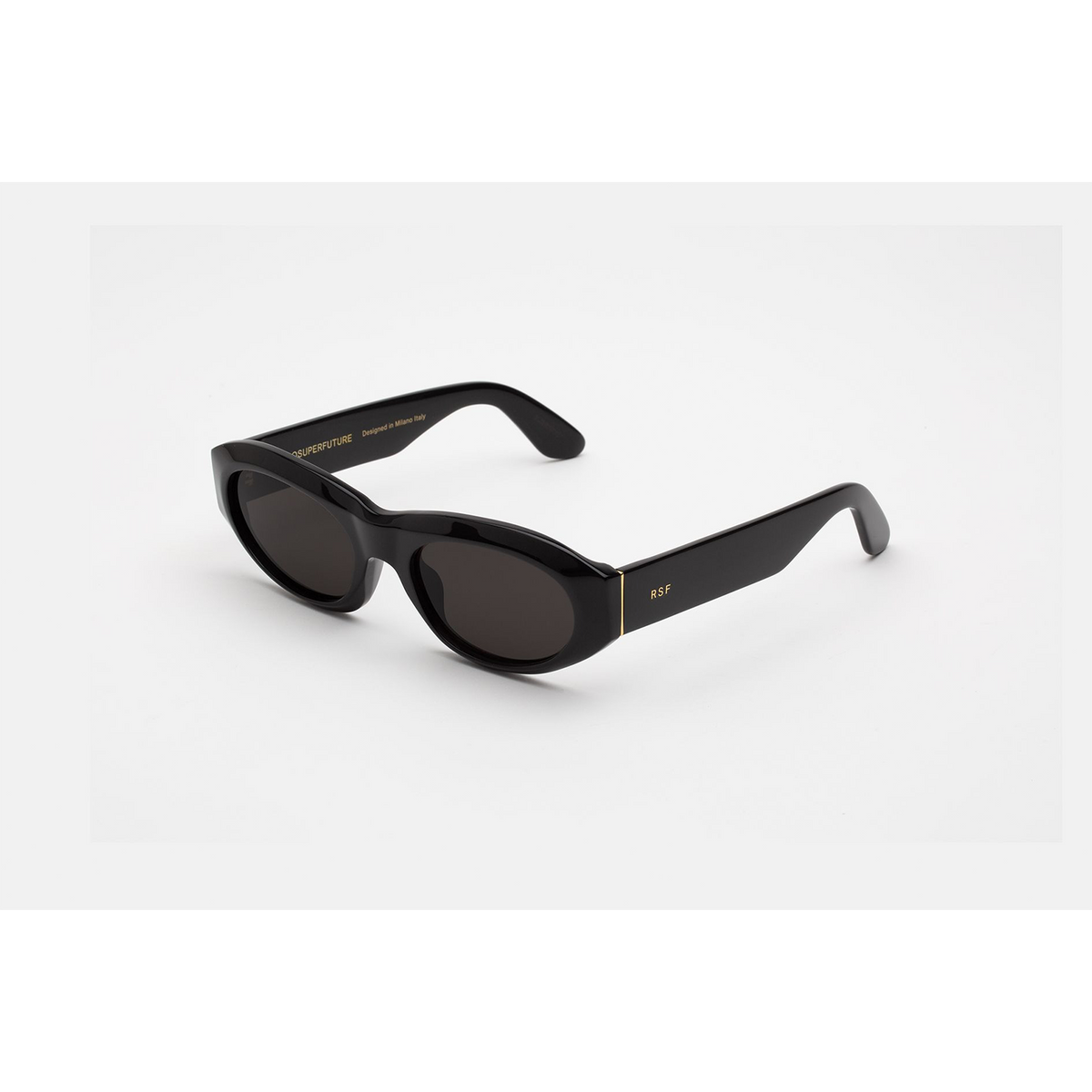 This version of the silhouette features a classic glossy black acetate and Zeiss extra black lenses. The box contains a semi-hard case and a cleaning cloth.
