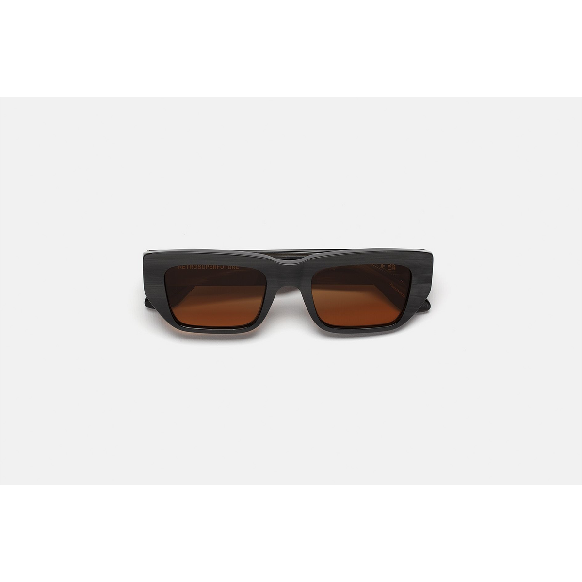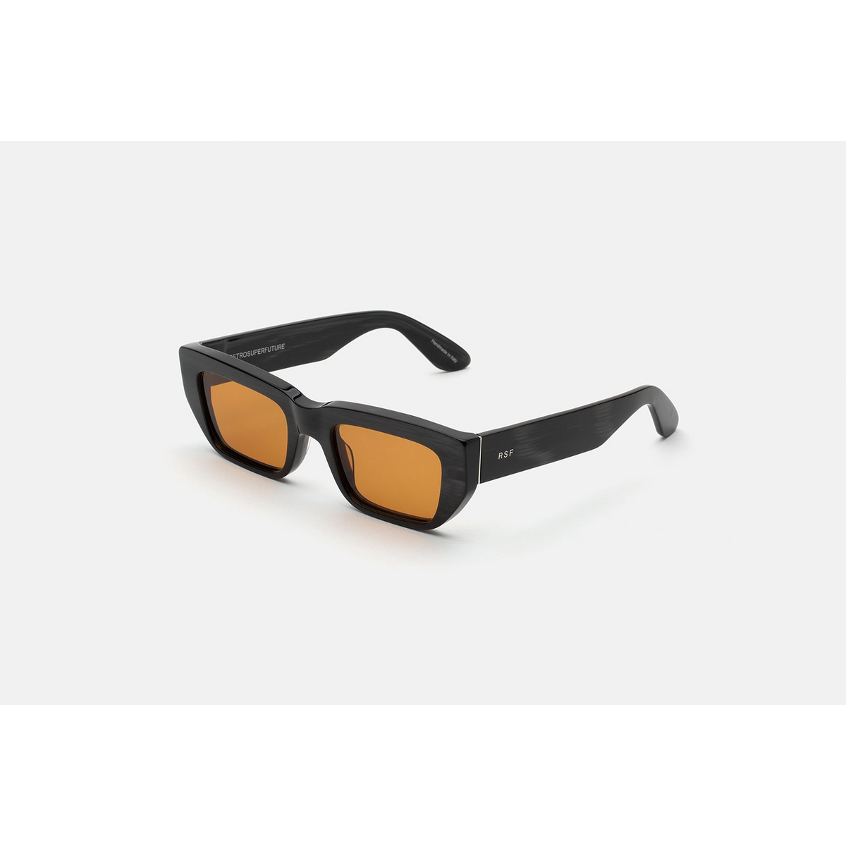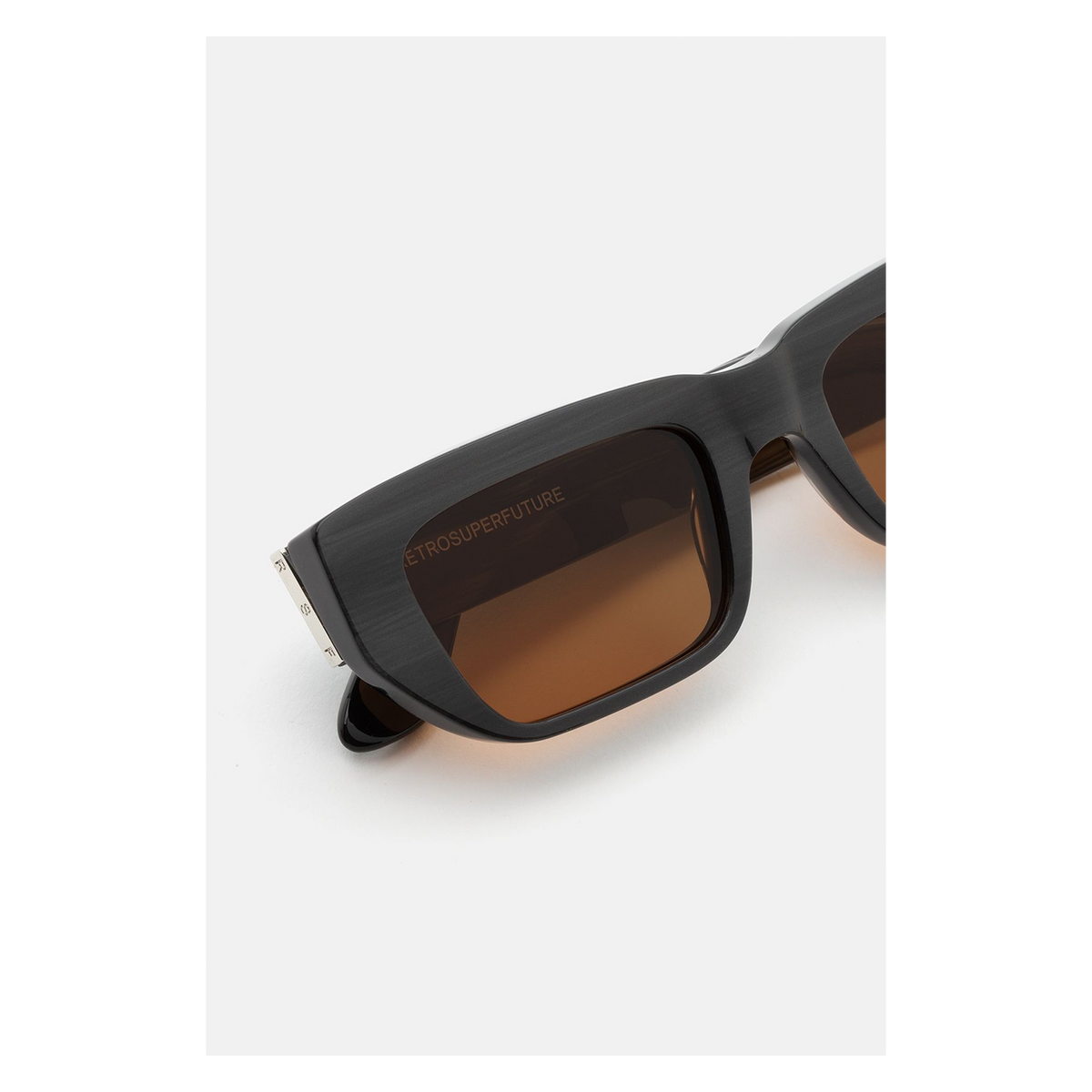 This version of the silhouette features a unique striated black acetate and Zeiss refined brown lenses. The box contains a semi-hard case and a cleaning cloth.