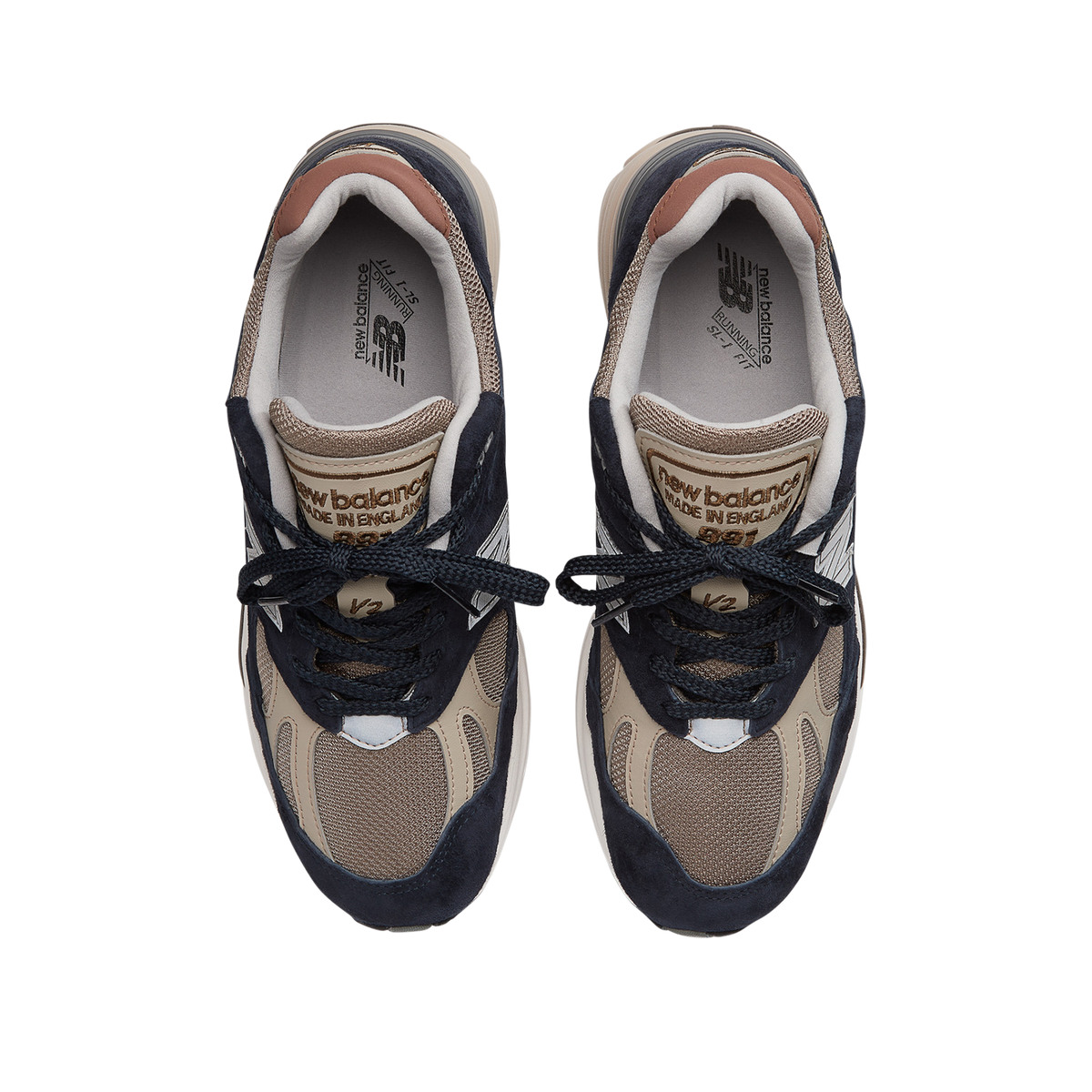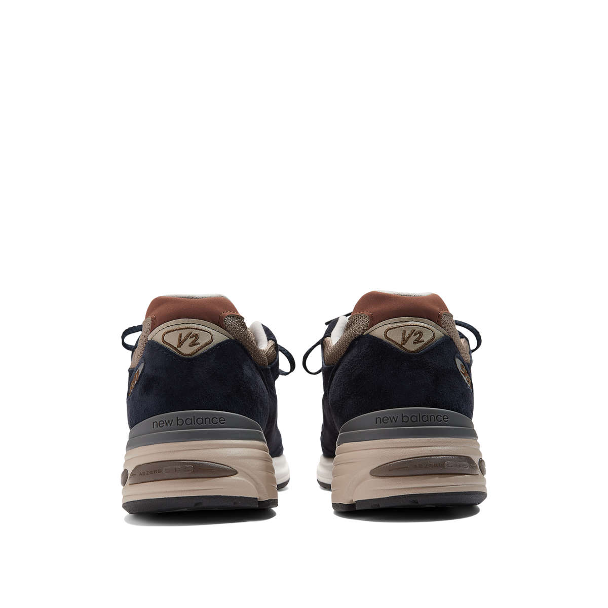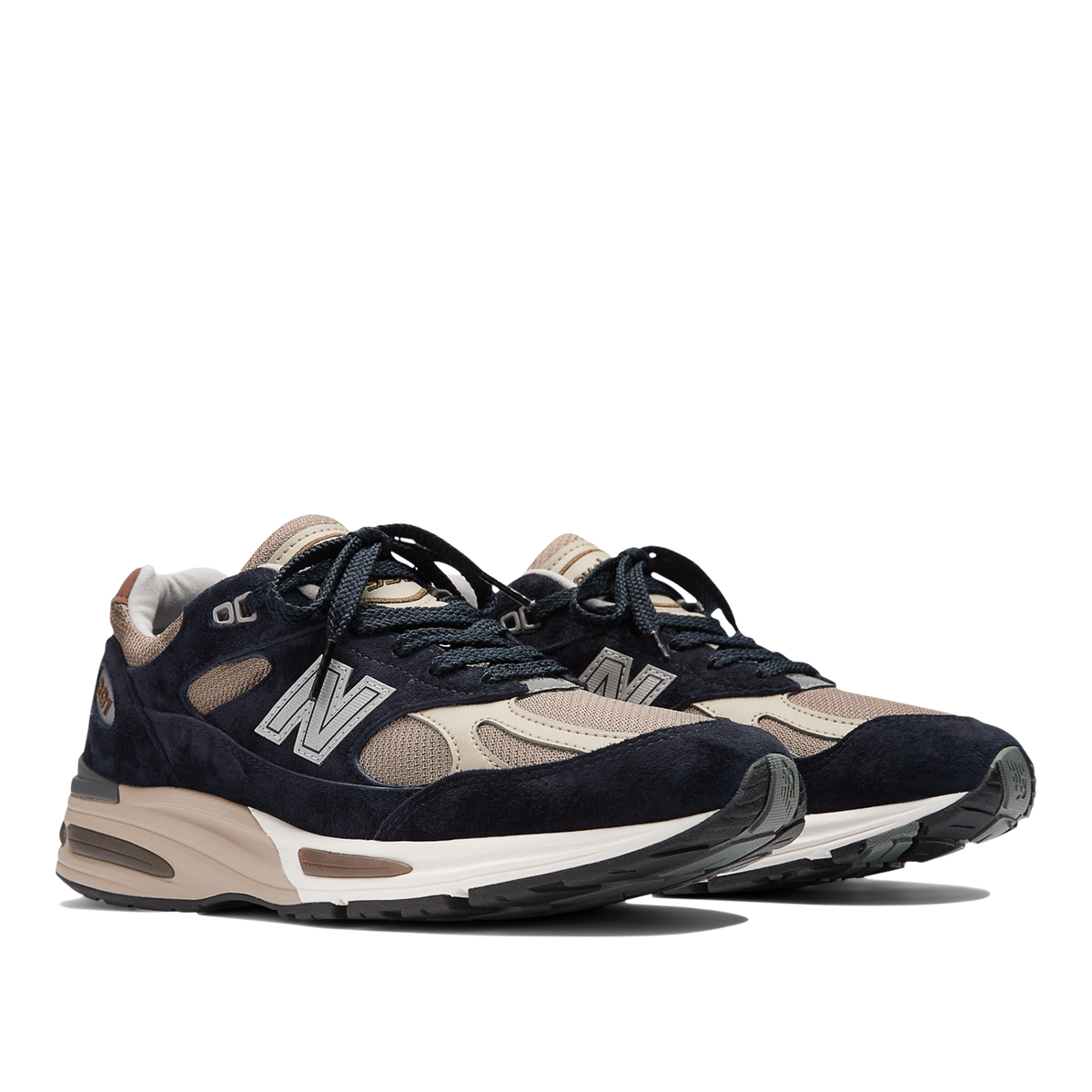 The MADE in UK 991v2 represents a new pinnacle, with an evolved take on this genuine icon. This premium, seasonal take on the 991v2 features premium pigsuede and synthetic nubuck accents, outfitted in navy, set against contrasting pops of taupe and rust orange.