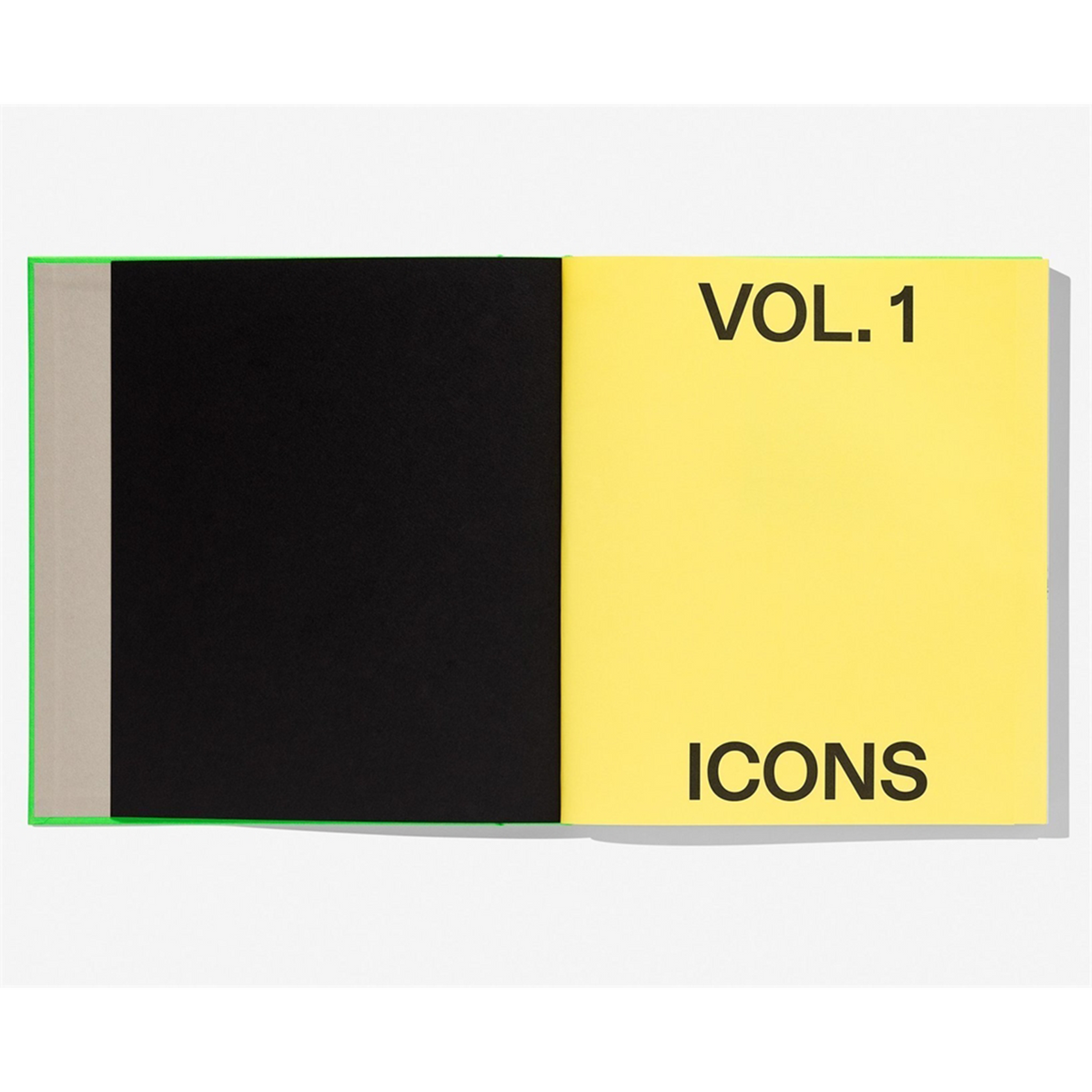 The binding on ICONS showcases an open spine, reflecting Abloh’s design philosophy.