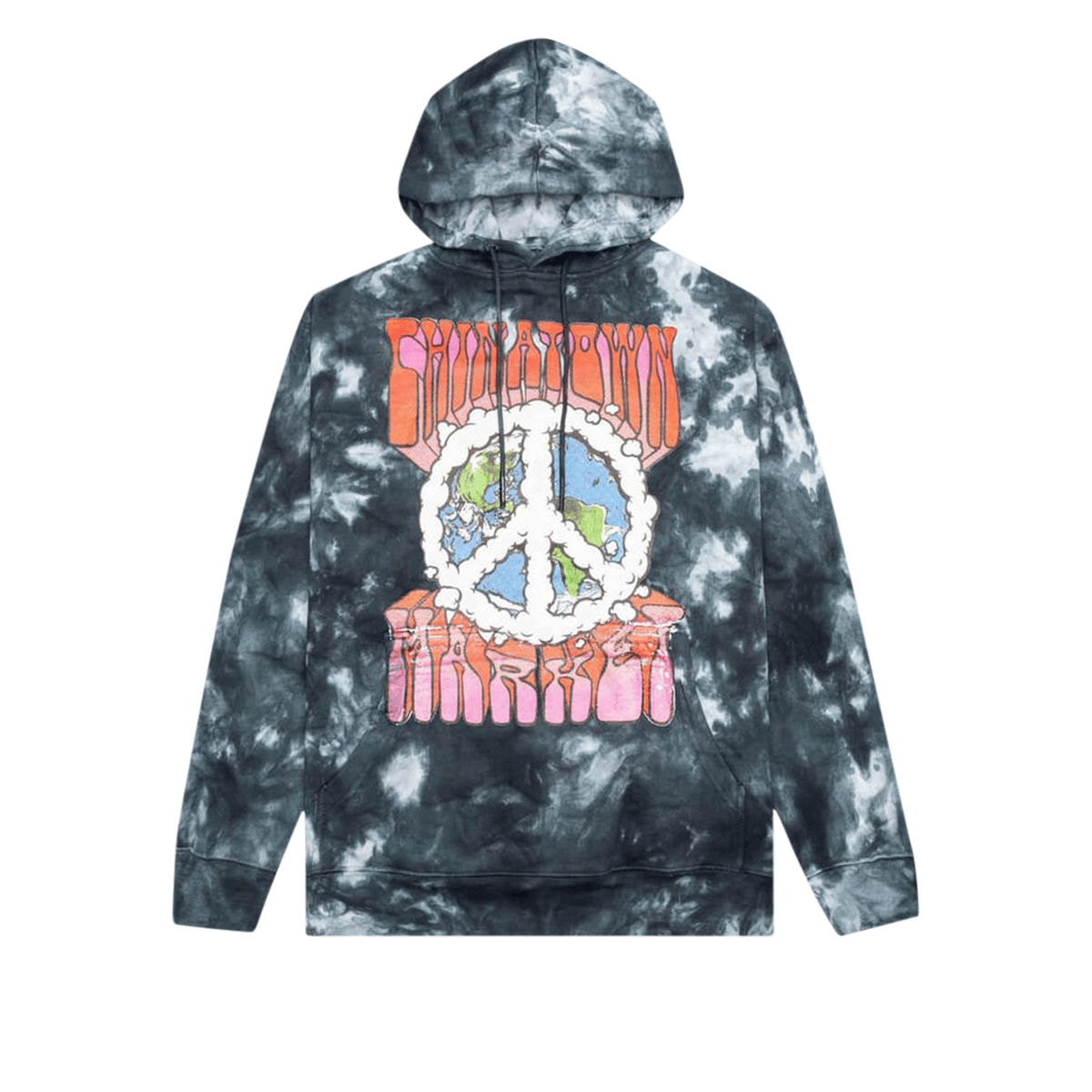 This hooded sweatshirt is cut from pure cotton featuring a vibrant grey and black tie-dye pattern. Its finished off with a psychedelic Seventies rendition of the brand name surrounding a peace symbol-shaped cloud over the Earth on the chest.