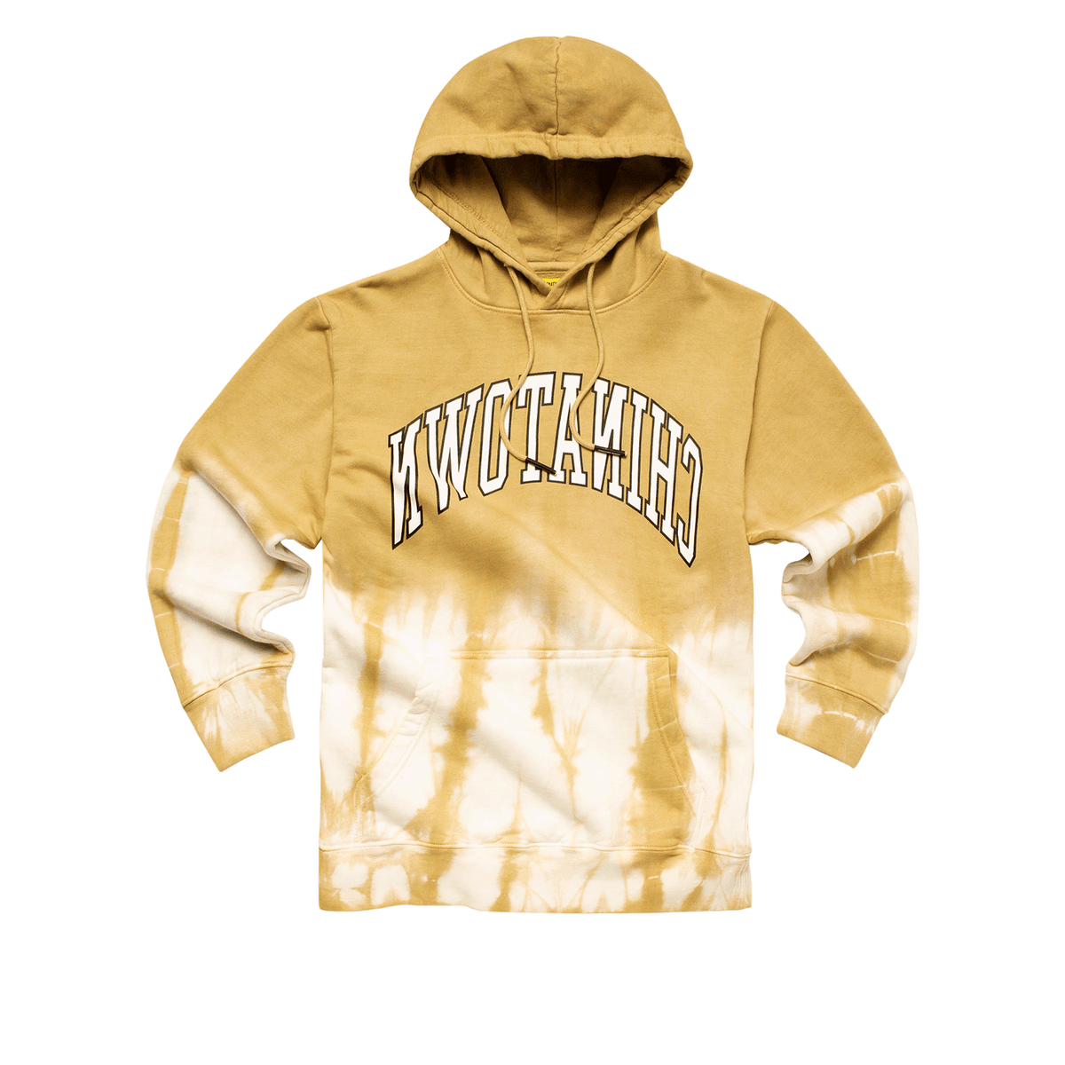 This tan coloured Hoodie from Chinatown Market has been tie-dyed for a touch of psychedelia, then printed with a reversed Arc logo, to complete the spaced out feel.