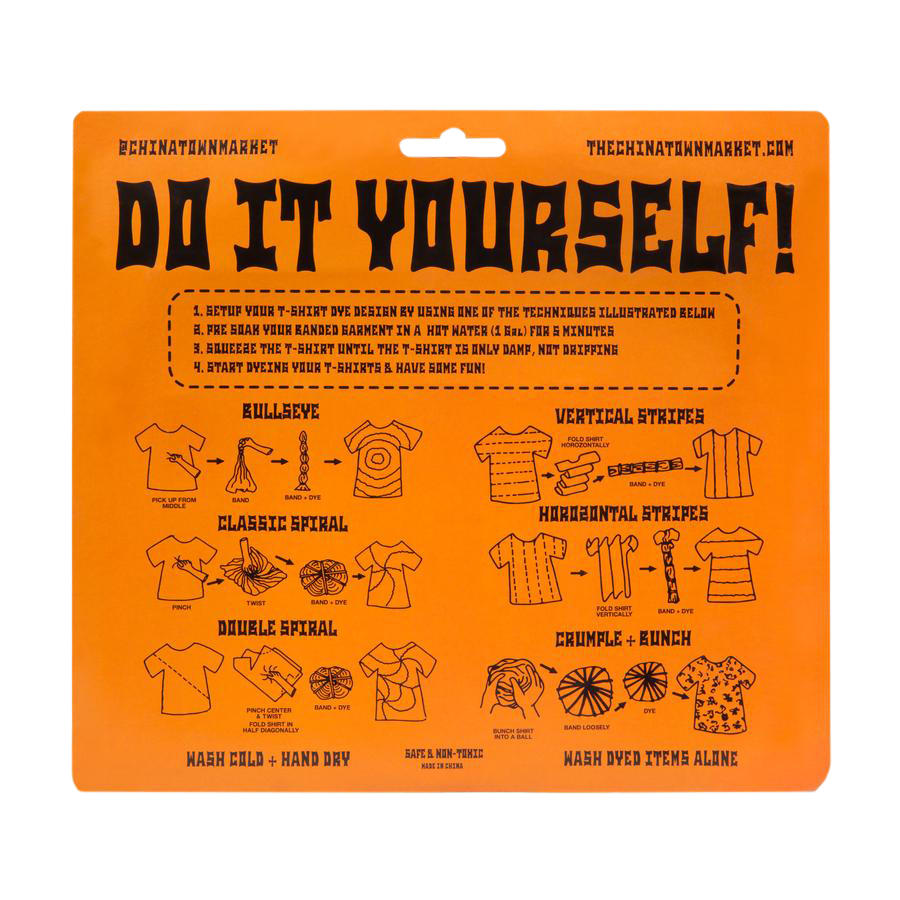 • Packaging displays instructions on how to do a bunch of cool types of dye patterns