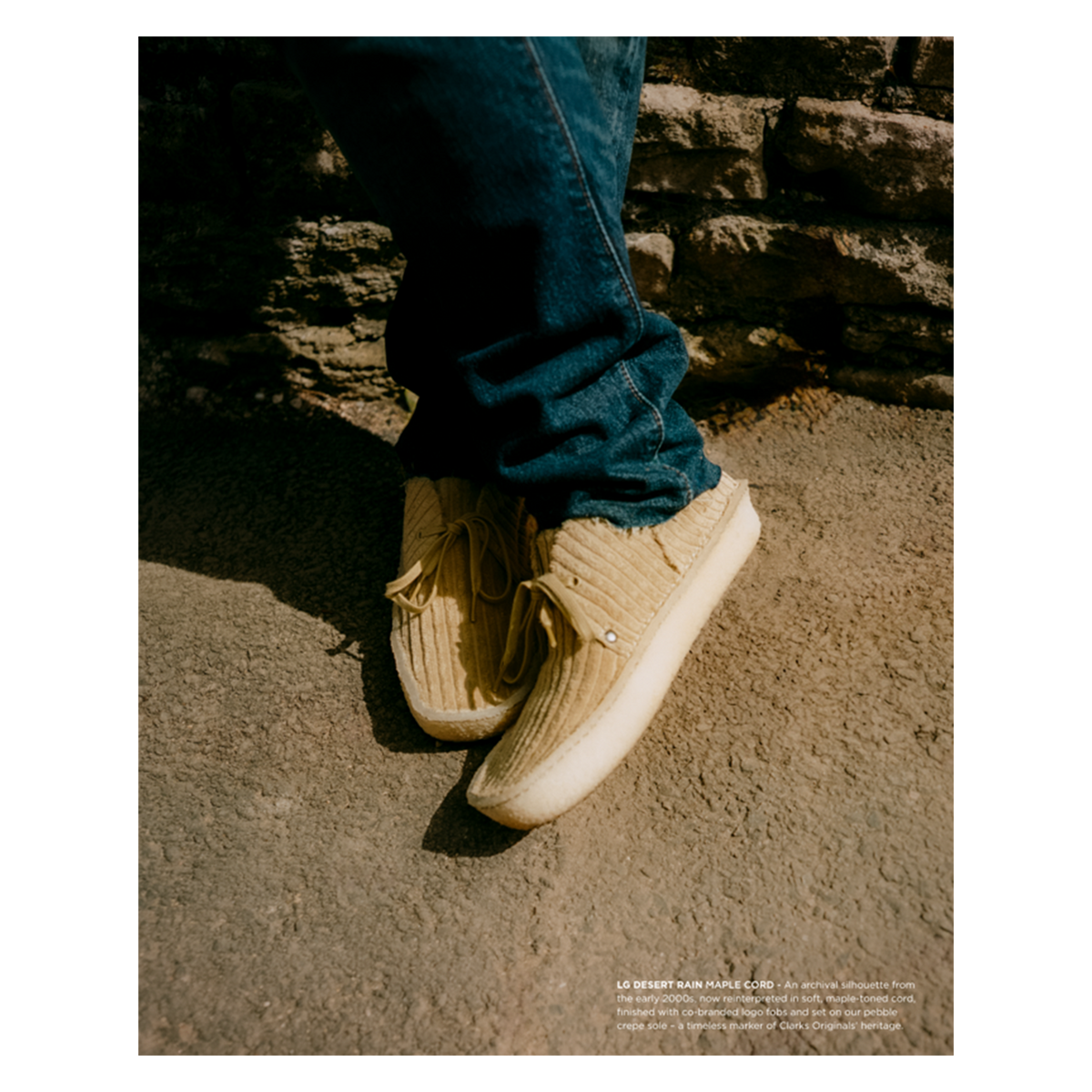 This season, Clarks are collaborating once more with Oasis frontman and Clarks Originals aficionado, Liam Gallagher, to revive a classic from the archives: the Desert Rain.