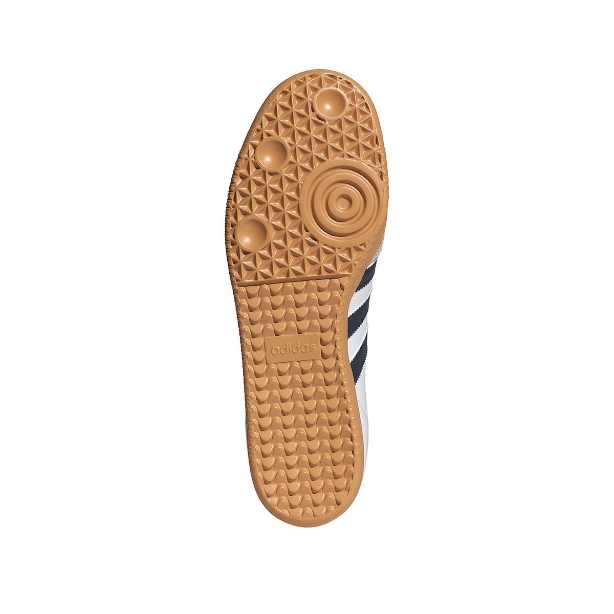 Their iconic gum sole and suede accents have propelled the Samba into fashion fame. Smooth leather envelops the foot in retro comfort as the serrated 3-Stripes add a flash of contrast. Reinforced toes stand up to the spontaneous kick-arounds, and the textile lining keeps things comfortable.