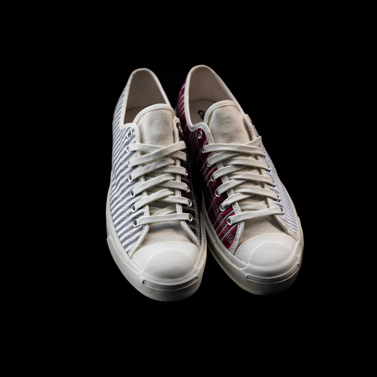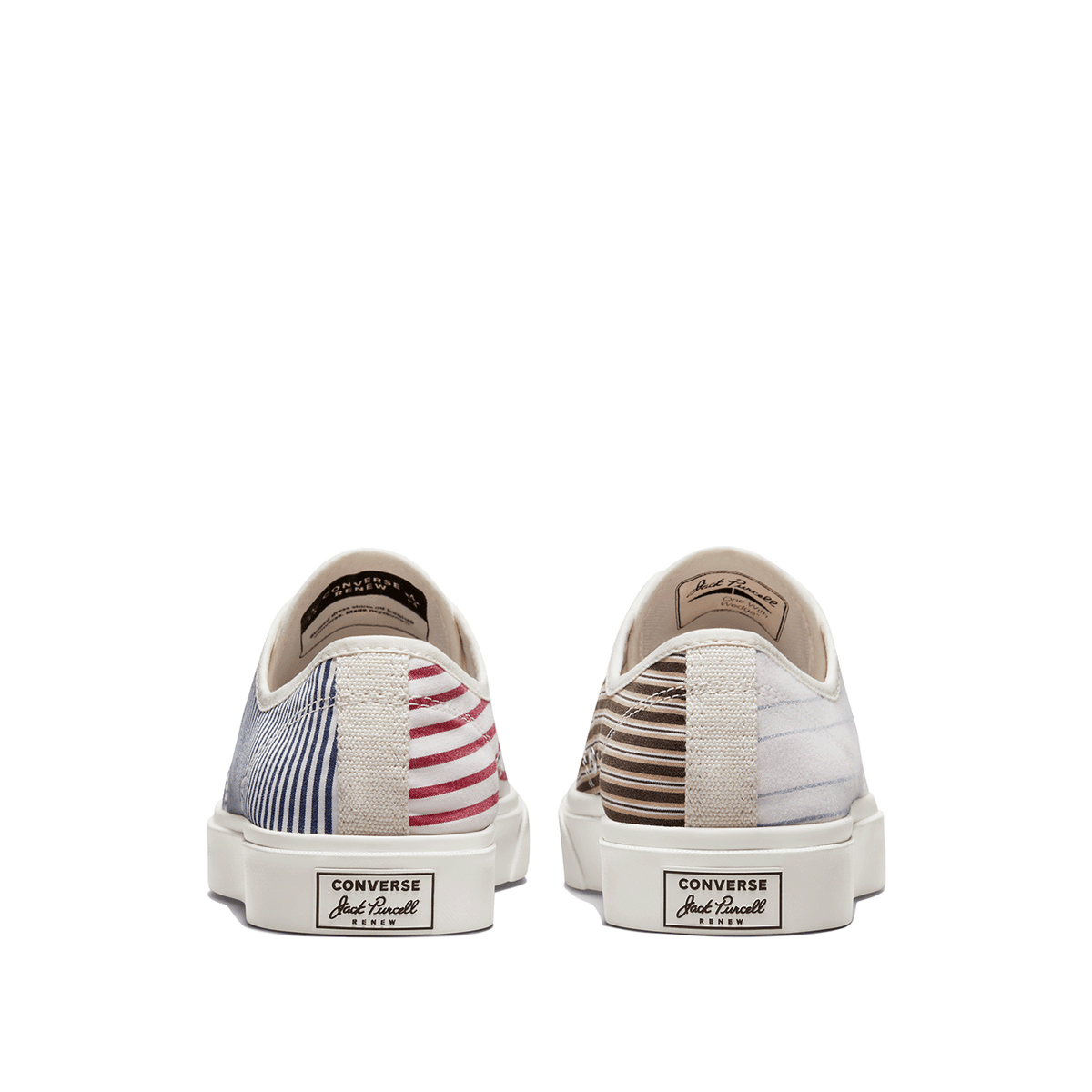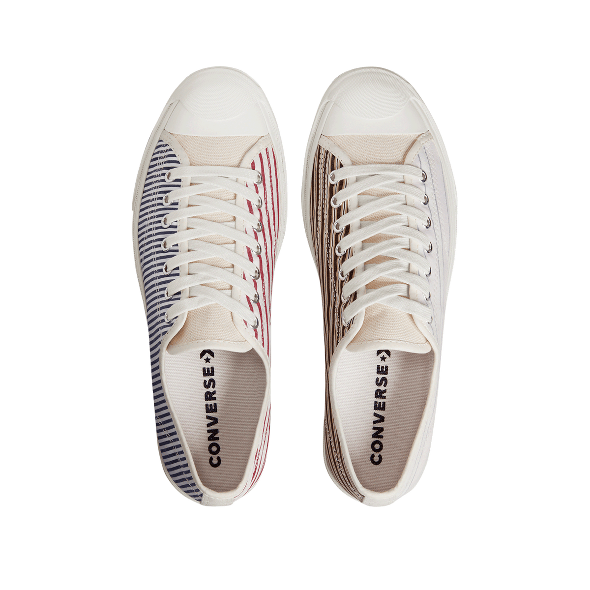 Retro chic meets classic prep on this upcycled Jack Purcell. Partnering with UK vintage brand Beyond Retro, Converse sourced secondhand striped shirts and stitched them together to craft the upper of this truly one-of-a-kind style. Each pair is made from different thrifted shirts, meaning no two pairs are the same. Rounding out the feel-good design is a multilayered cushioning wedge for comfort and a signature "smile" on the toe cap in classic JP style.
