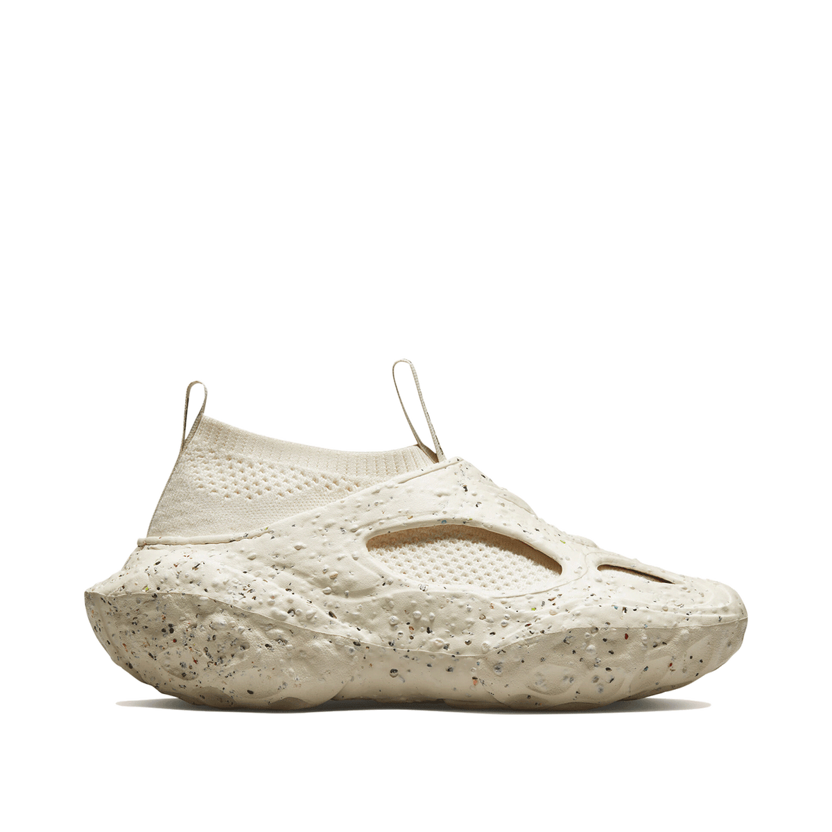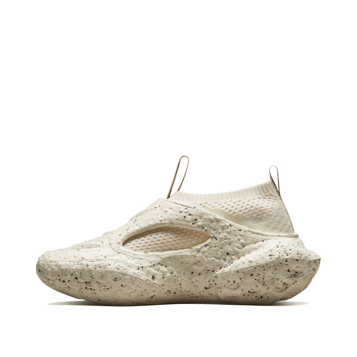 An approximately 95% recycled, breathable knit upper sits on top of a PU foam CX sockliner, and within a sculpted crater foam body, bringing considerate ideals to the comfort-first option. A recycled polyester tongue and heel pulls allow for easy on and off, and a recycled mesh sockliner top cloth delivers surrounding comfort to the entire foot. The future is here.