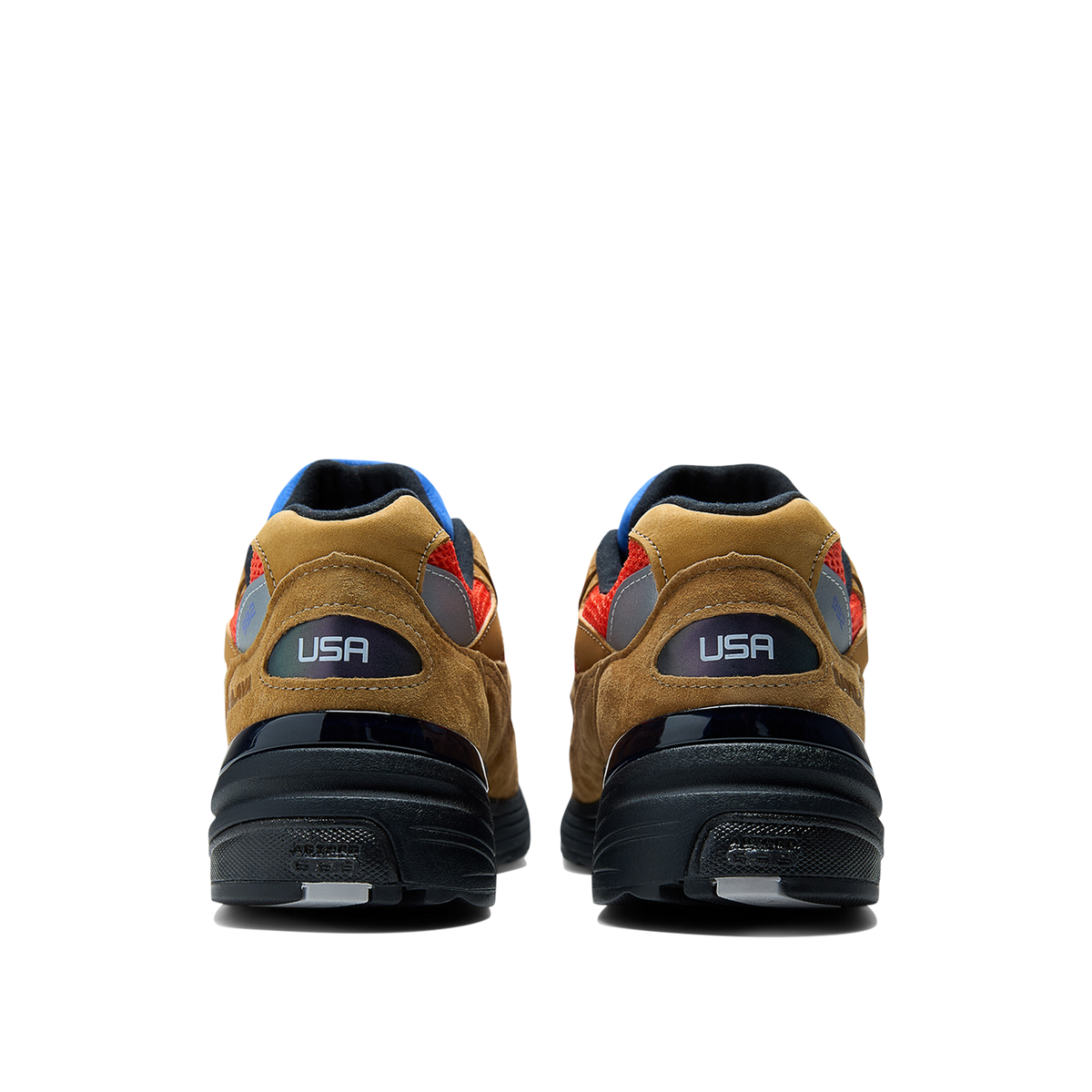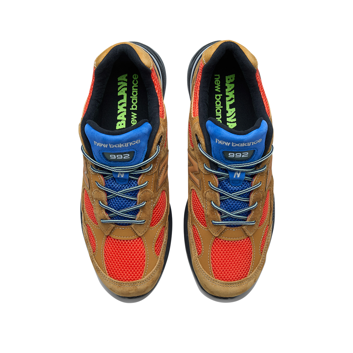 With 'Tiger Eye,' Bronson pairs textural brown suede with pops of flame orange mesh. These warm tones are emboldened by a cobalt blue tongue and the smoky black outsole. Intricate details like the stamped "BAKLAVA" logo and striped boot laces call back to trademark elements of Action’s style.