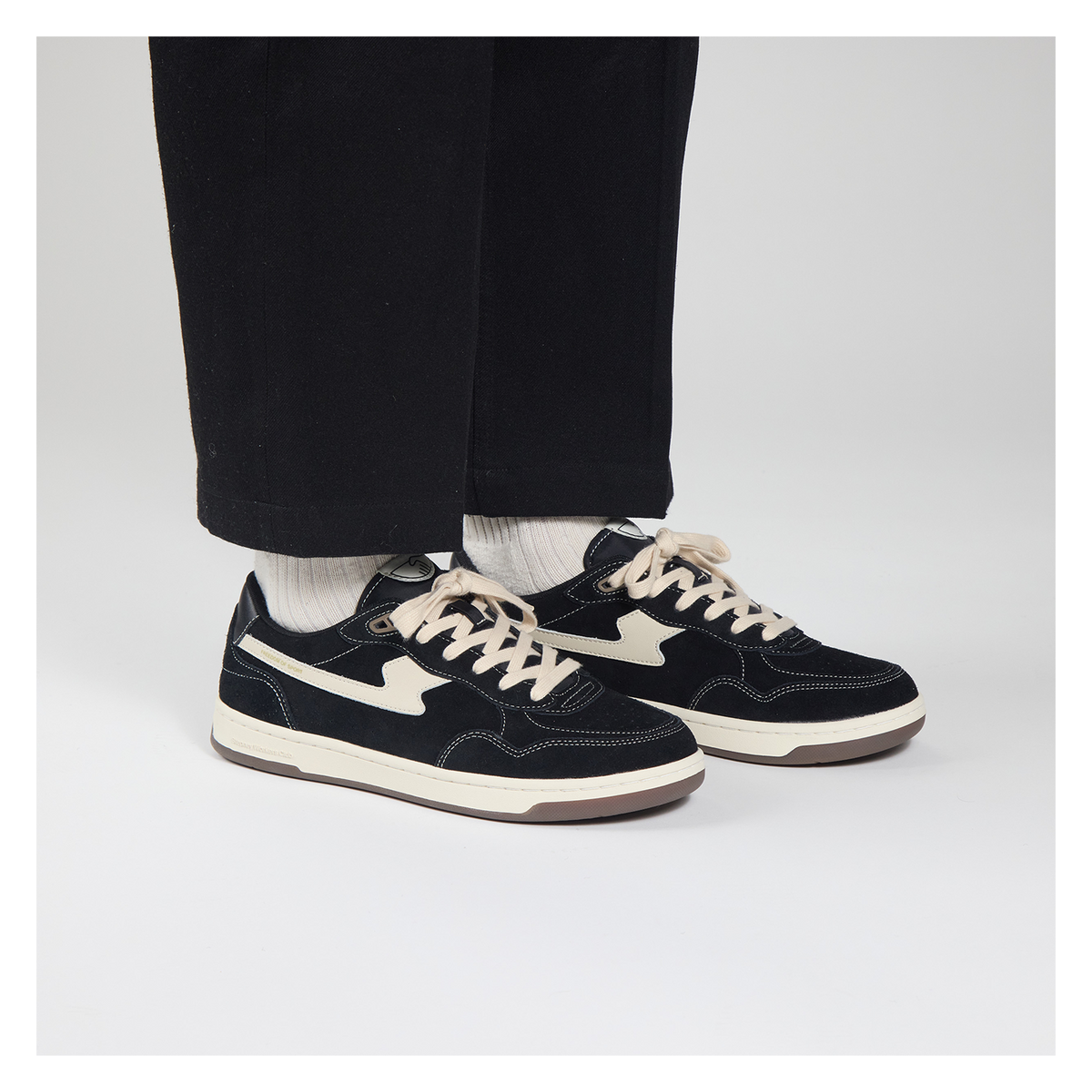 Taking design cues from lightweight responsive court sports footwear and mixing classic sneaker materials in a homage to the origins of sports sneakers.