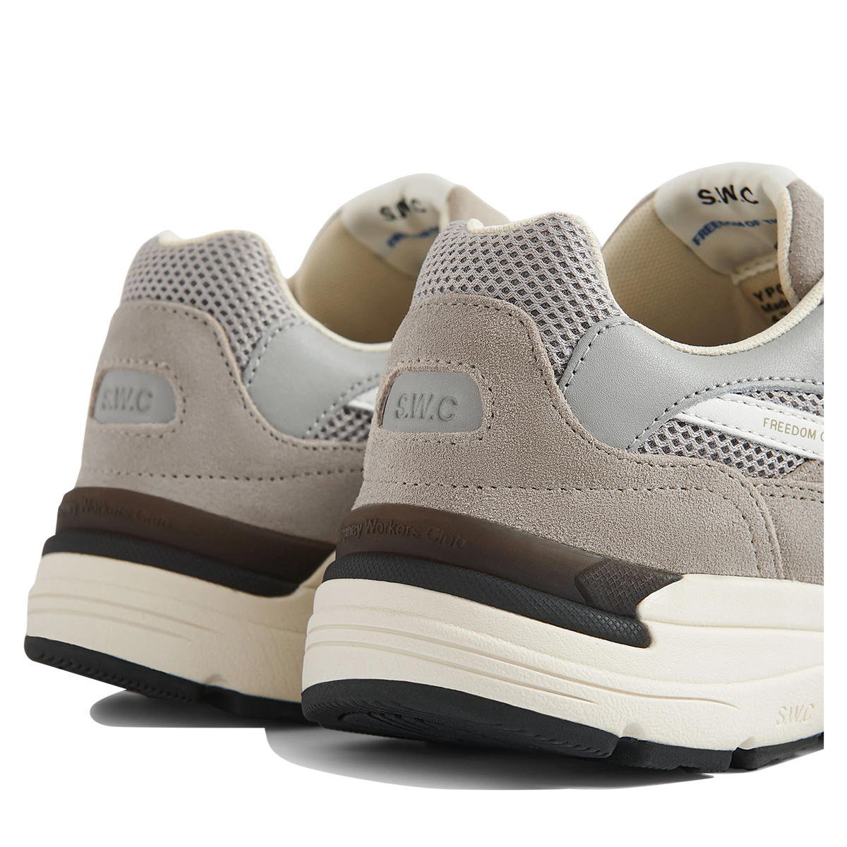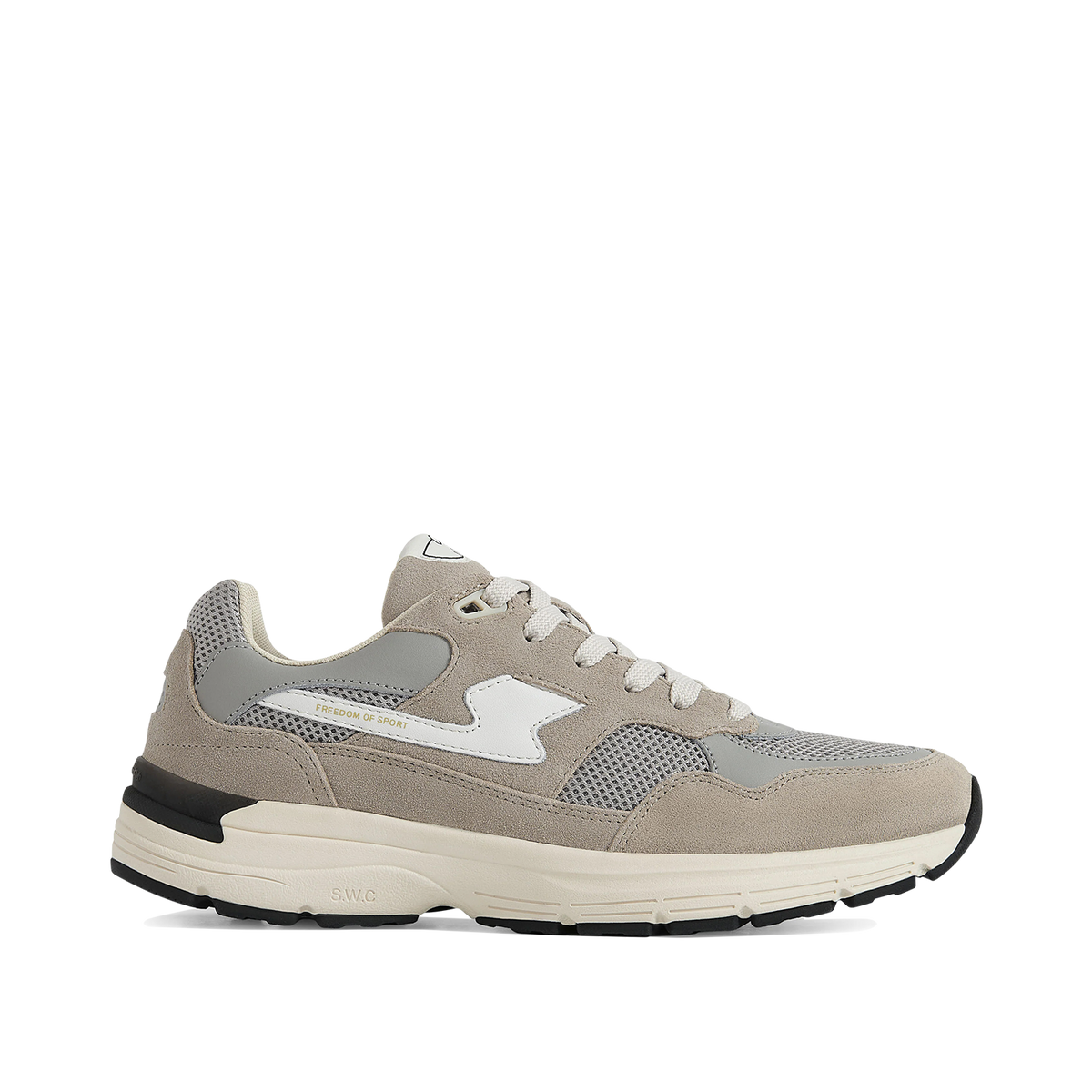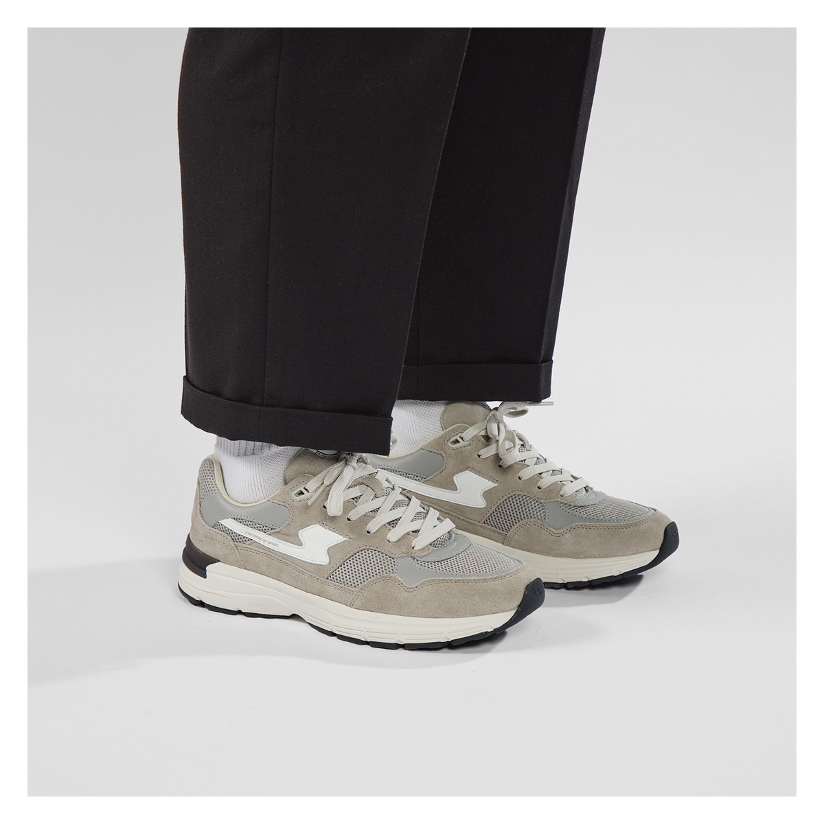 It is fitted with lightweight grey suede uppers with a tonal grey sports mesh forepart and an ecru leather S-Strike. The sole is constructed with a complex 3-part lightweight engineered sole featuring low-density cushioned EVA midsole, cleated runner ‘island’ bottom sole and an S-Strike TPU heel support for stability.