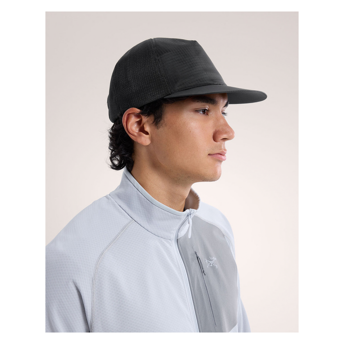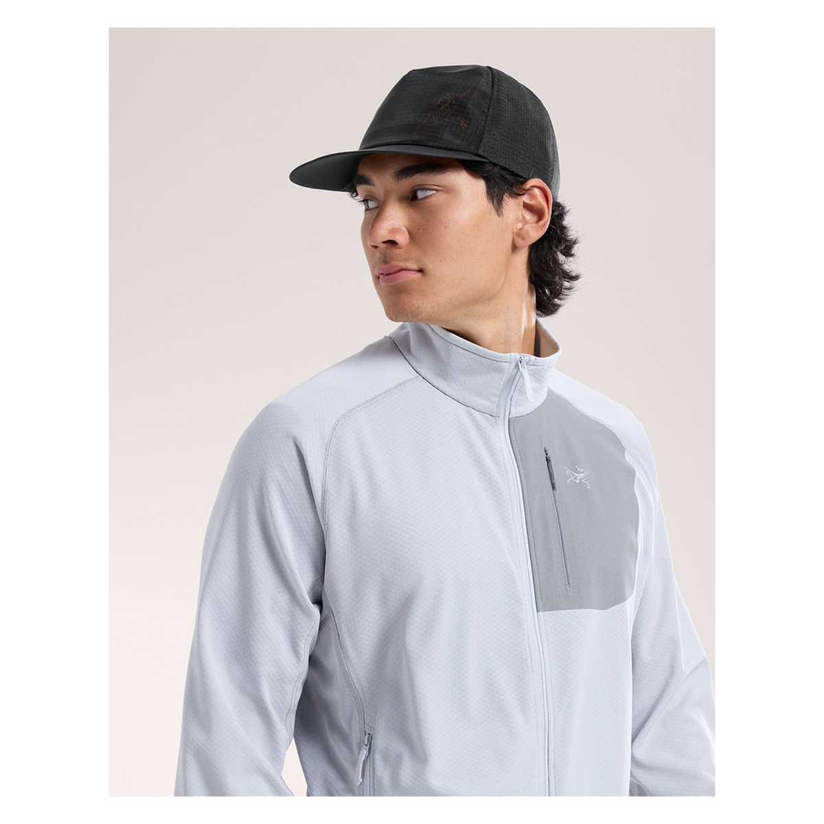 Up front, it’s made with Airshell nylon micromesh – highly breathable, stretchy, and super light. The monofilament mesh back provides structure and ventilation, a Spacermesh headband manages moisture, and the foam brim is packable and light – the cap stuffs easily into your pack or pocket.