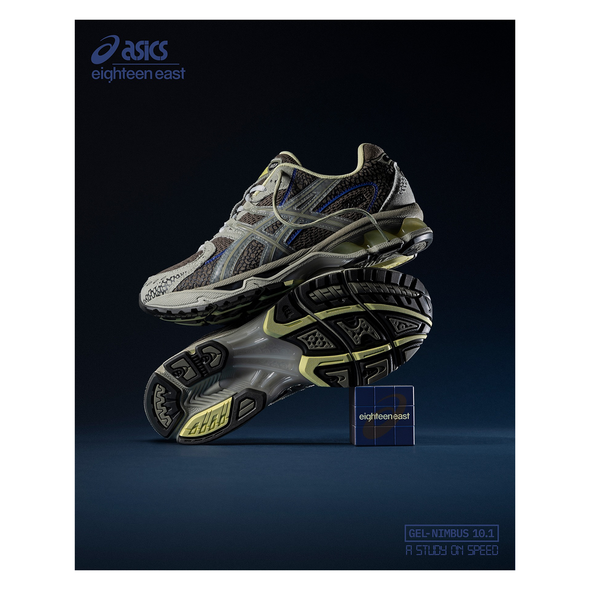 Inspired by the dichotomy of fast and slow, 18 East substituted many of the NIMBUS 10.1’s performance-focused synthetic elements with unfinished, natural textiles like raw edged cotton canvas, hemp blended mesh and jacquard cotton.