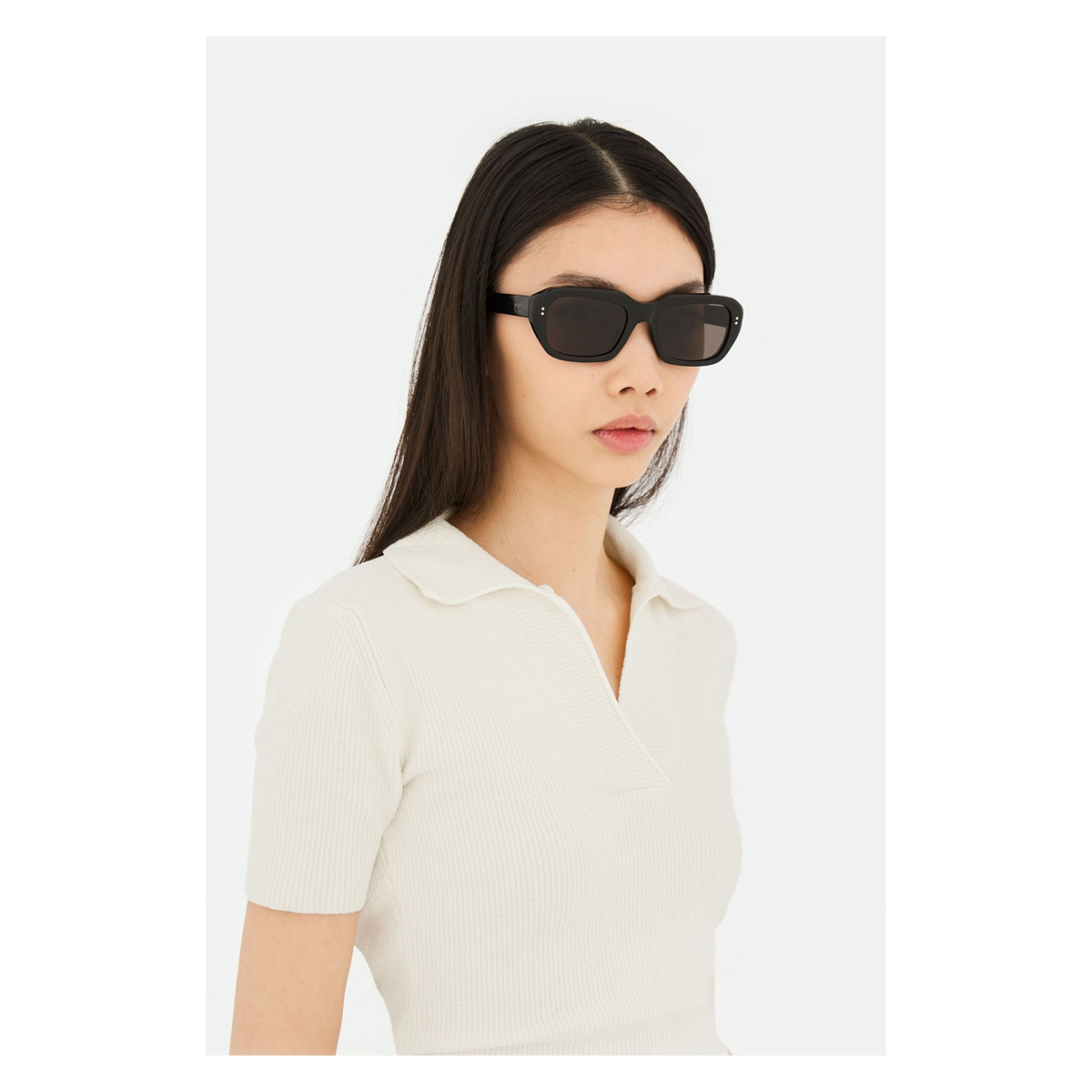 This version of the silhouette features a classic glossy black acetate and Zeiss extra black lenses. The box contains a semi-hard case and a cleaning cloth.