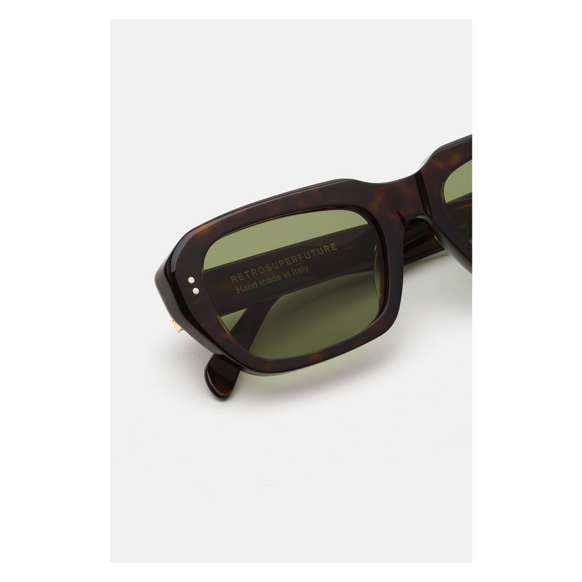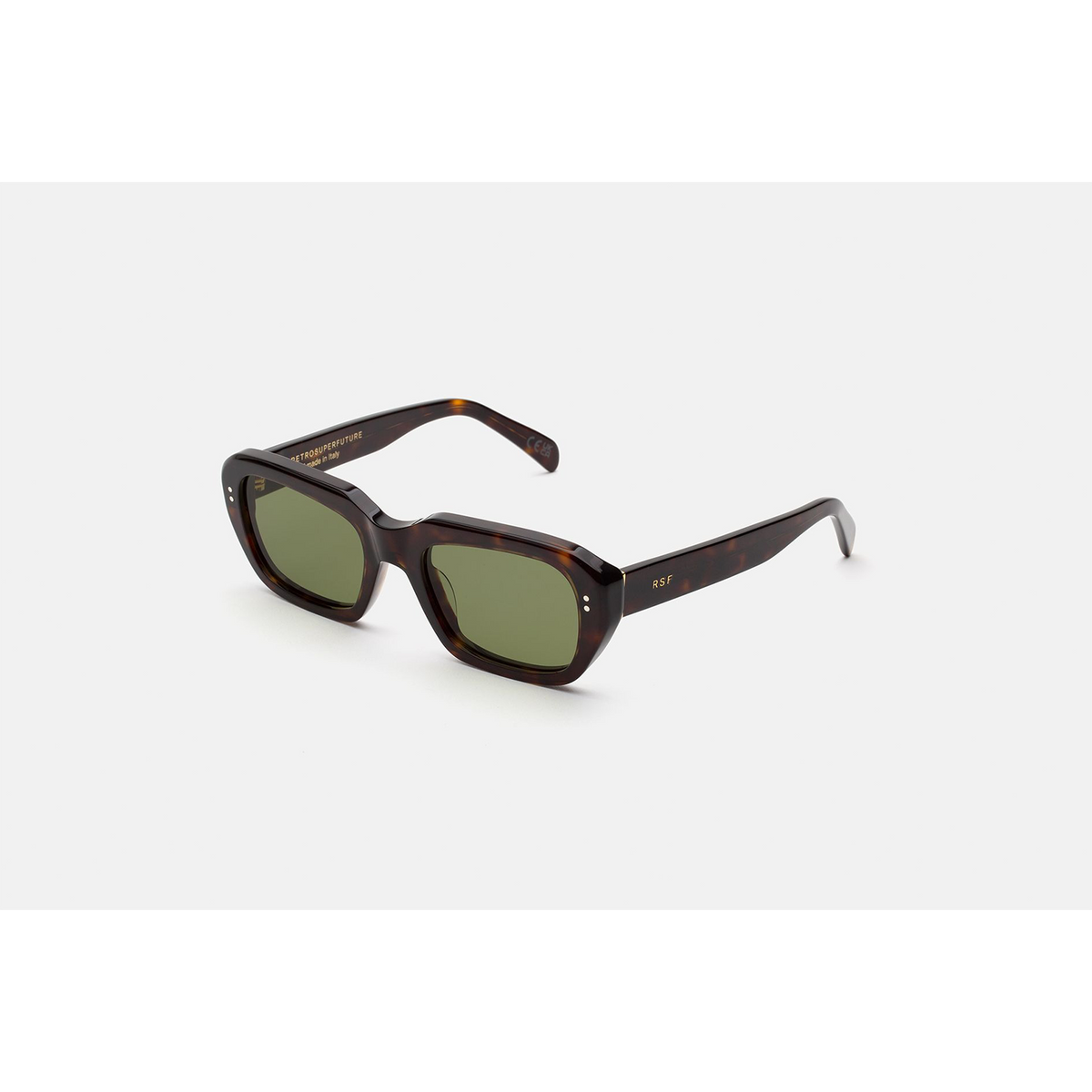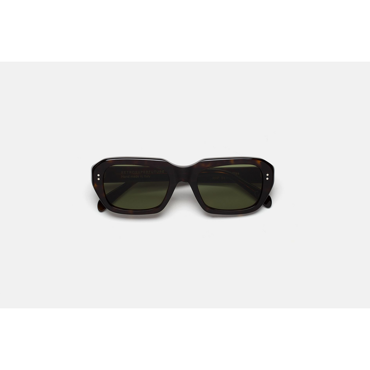 This version of the silhouette features a dark havana tortoiseshell acetate and elegant Zeiss bottle green lenses. The box contains a semi-hard case and a cleaning cloth.