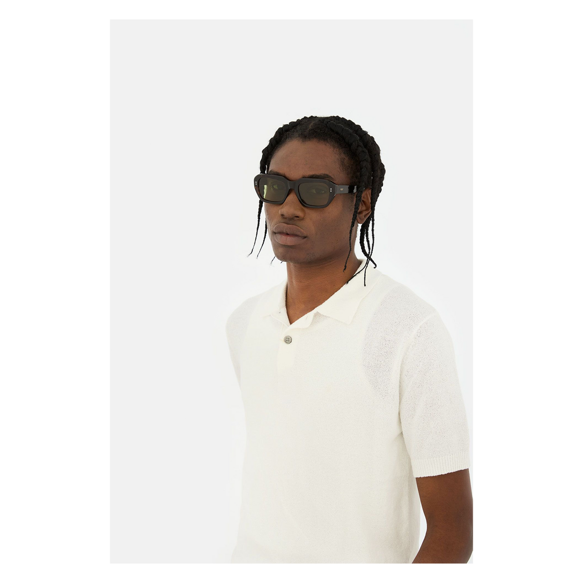 The oversized sturdy rims of the Miles model immediately attract attention. Inspired by the legendary talent of the "space age" era jazz musician, with a unisex silhouette, minimalistic branding, precious metal hardware and distinctive approach, further underlined by a temple that grows tapered from thick.