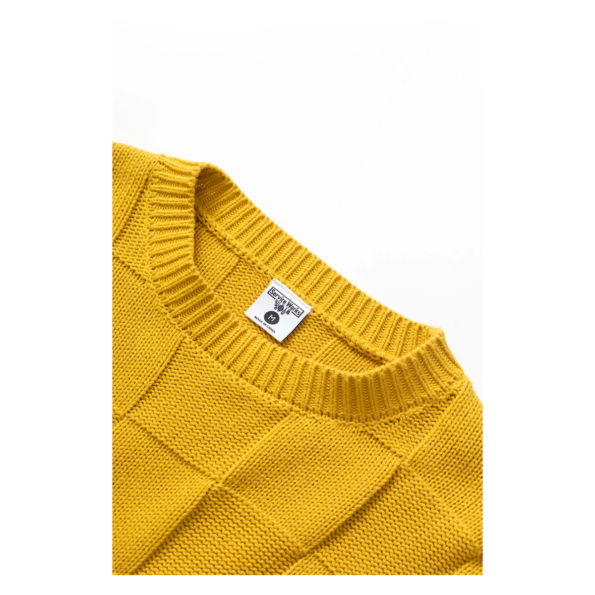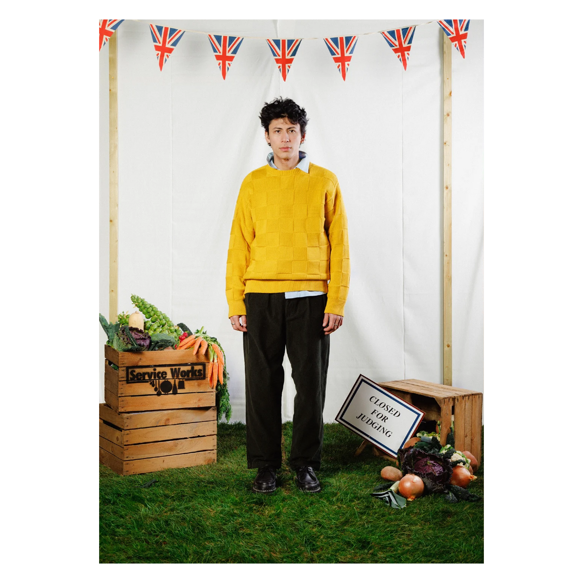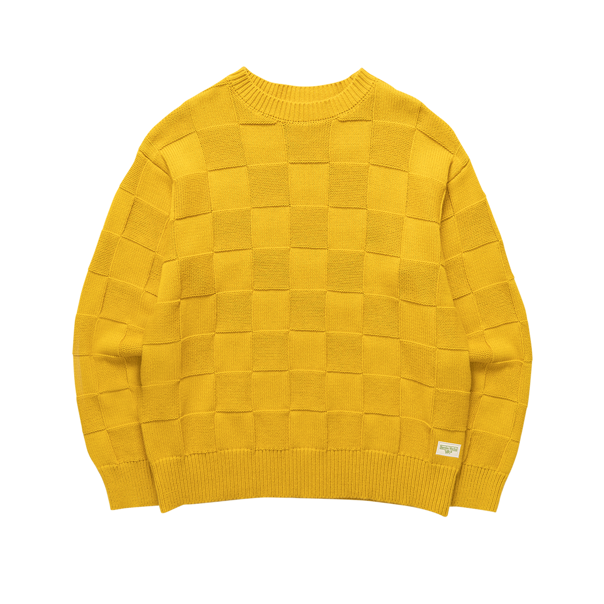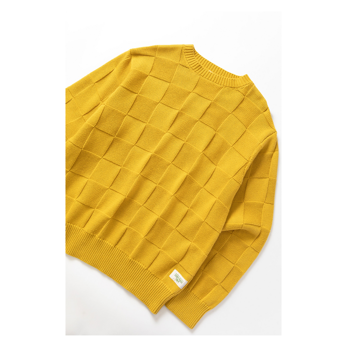 This crewneck sweater is knitted from cotton with a tonal checkerboard effect. It is finished with and embroidered logo patch.