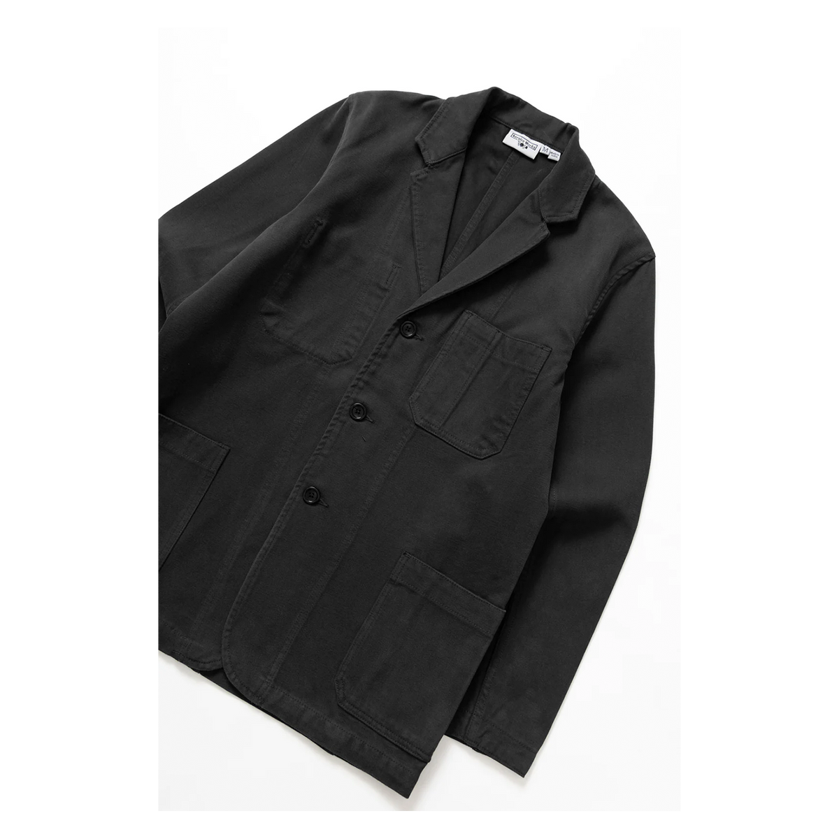 The Moleskin Server Jacket is an unstructured workwear blazer with a three button closure. It is cut from organic cotton moleskin to a relaxed fit and features three front pockets plus an internal chest pocket.