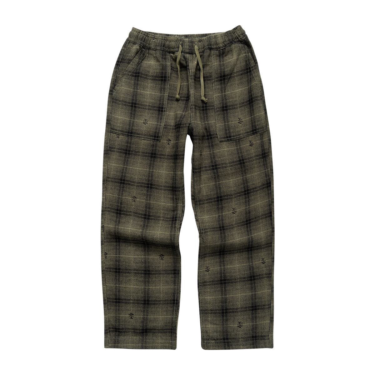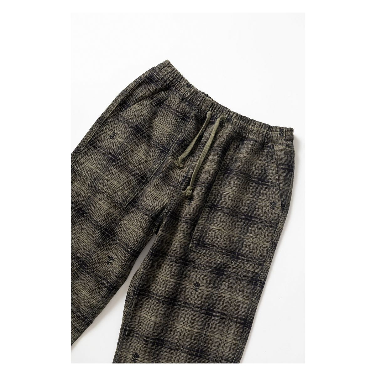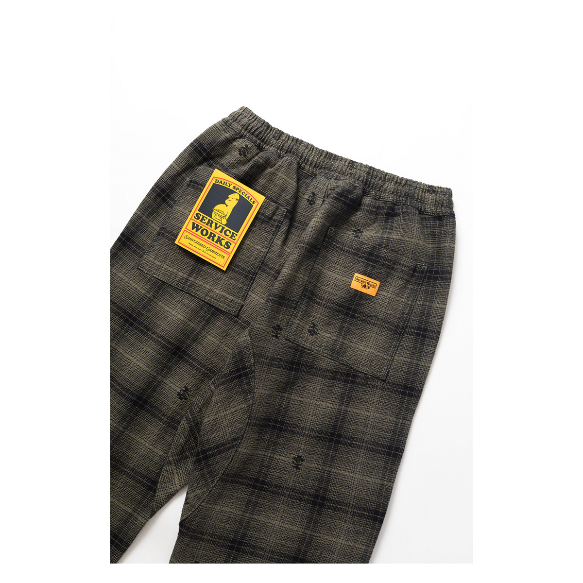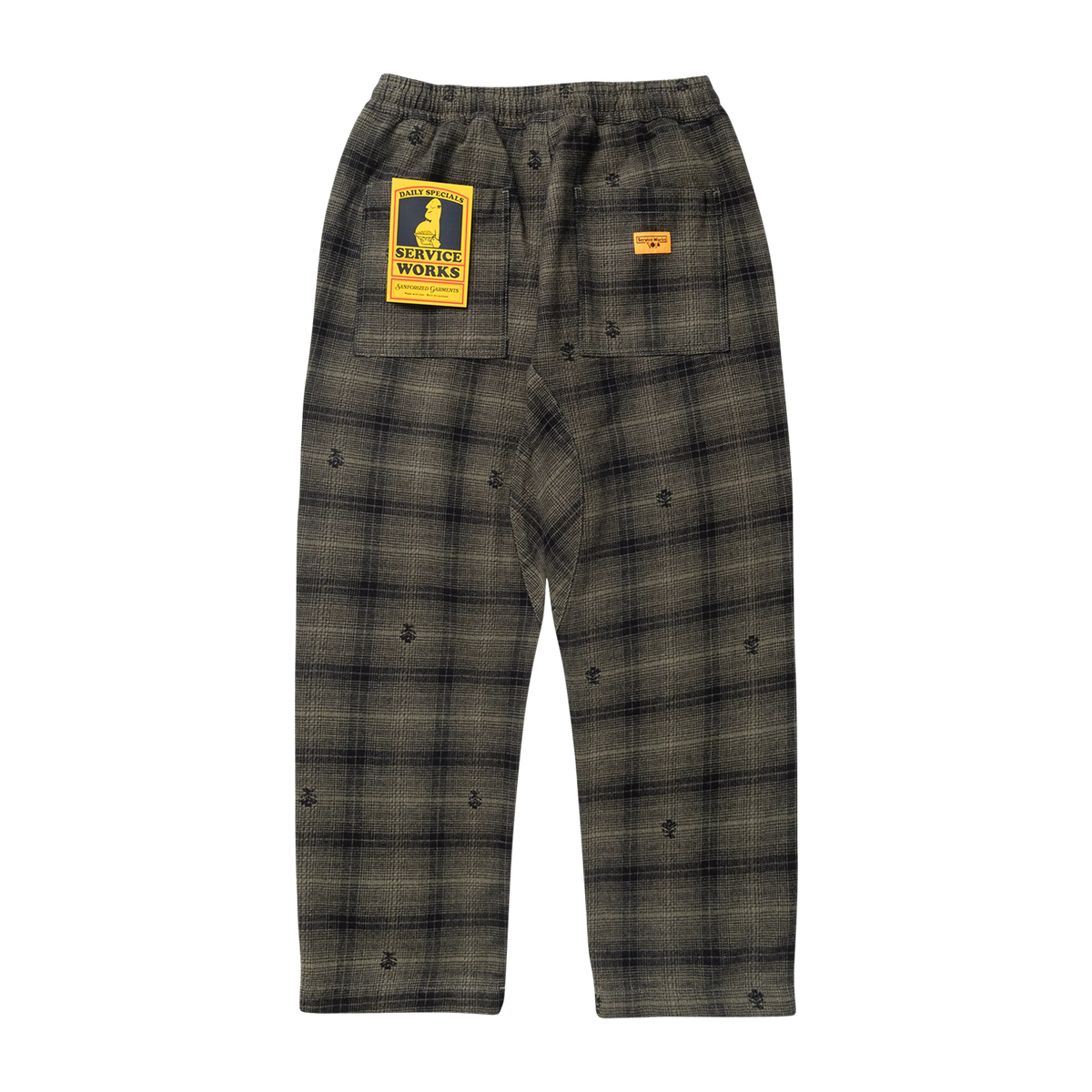 The Classic Chef Pant in organic cotton flannel is cut from a custom yarn-dyed thistle plaid to a relaxed straight-leg fit. Featuring an elasticated waistband with drawstring, front raised fatigue pockets, rear patch pockets, reinforced crotch panel and trademark logo woven label.