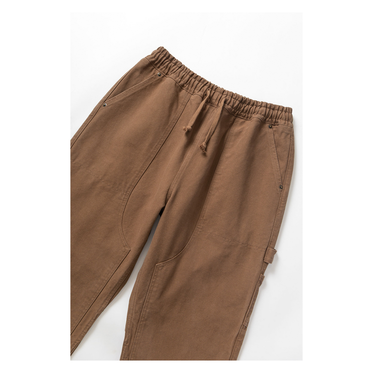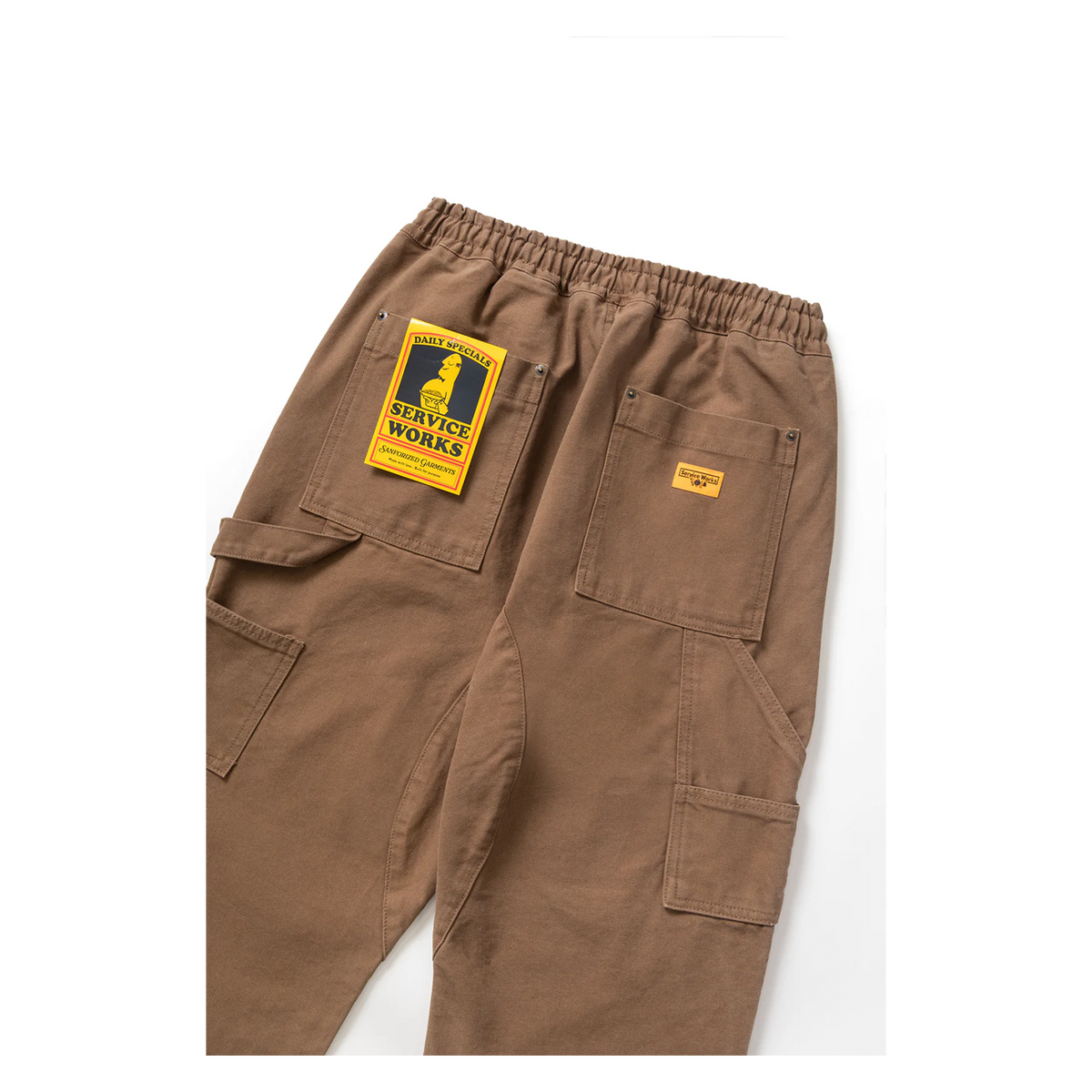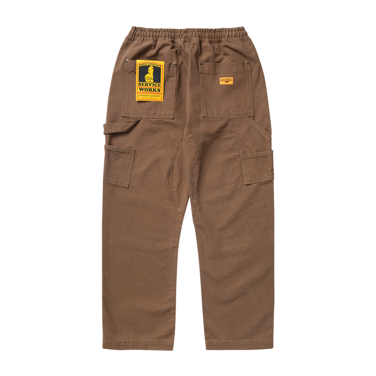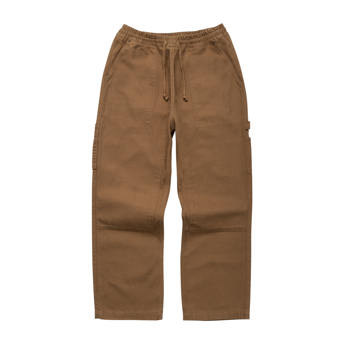 Cut to a relaxed straight-leg fit, and featuring the following workwear inspired details: front raised fatigue pockets, back patch pockets, double knee, hammer loop with utility pockets, stacked pockets, elasticated waistband, reinforced crotch panel.