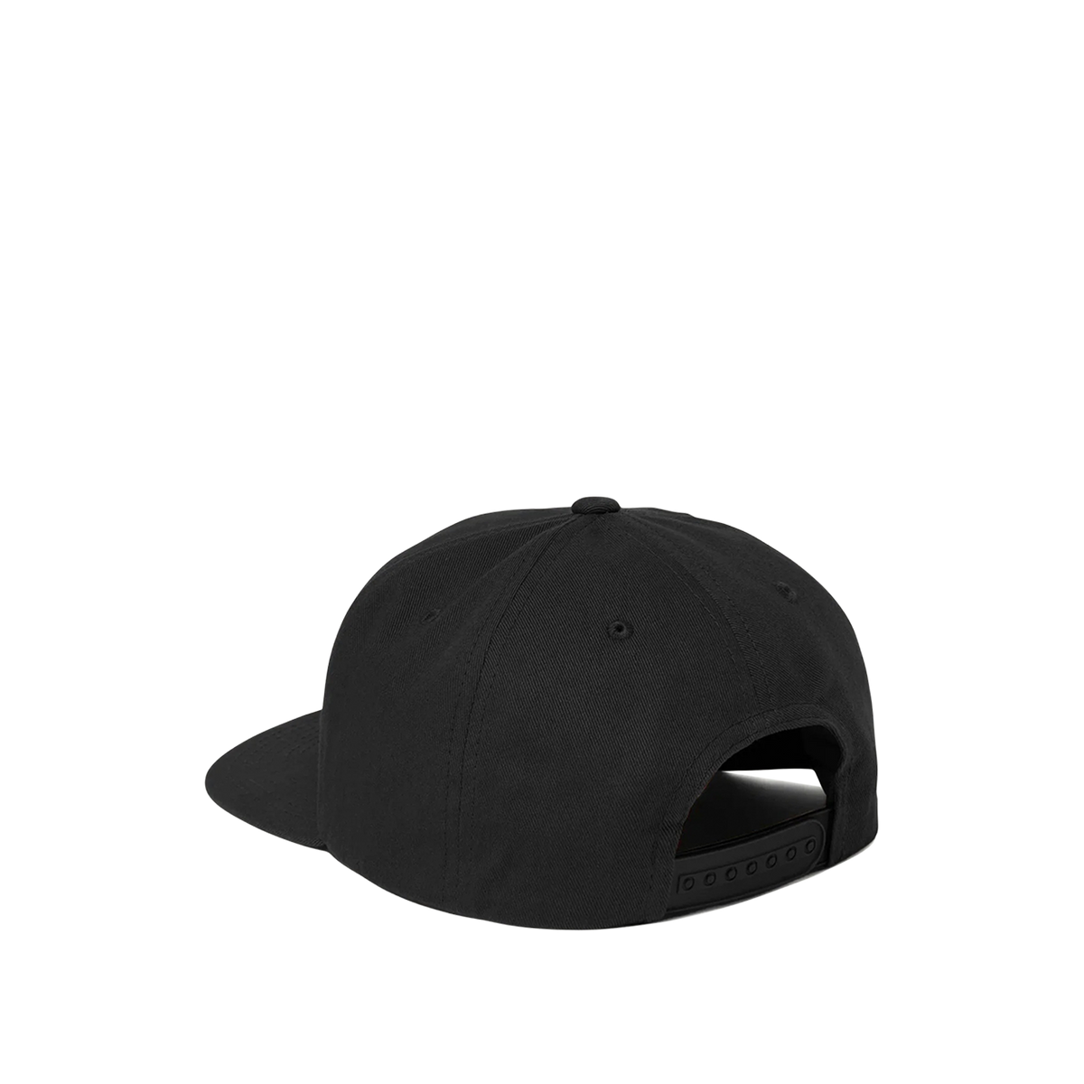 This snapback cap is constructed from black cotton twill, features an embroidered graphic, and is finished with a snapback closure.