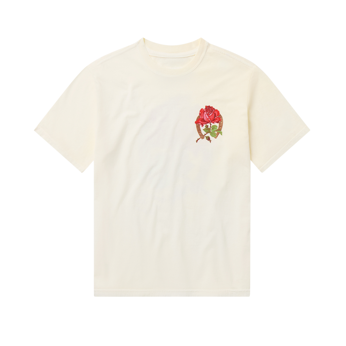 This tee is cut to a custom boxy fit from pure cotton fabric, knitted and constructed in the USA. It features screen-printed artwork on the chest and in large format on the back, and a heavy vintage wash for a lived in look and feel.
