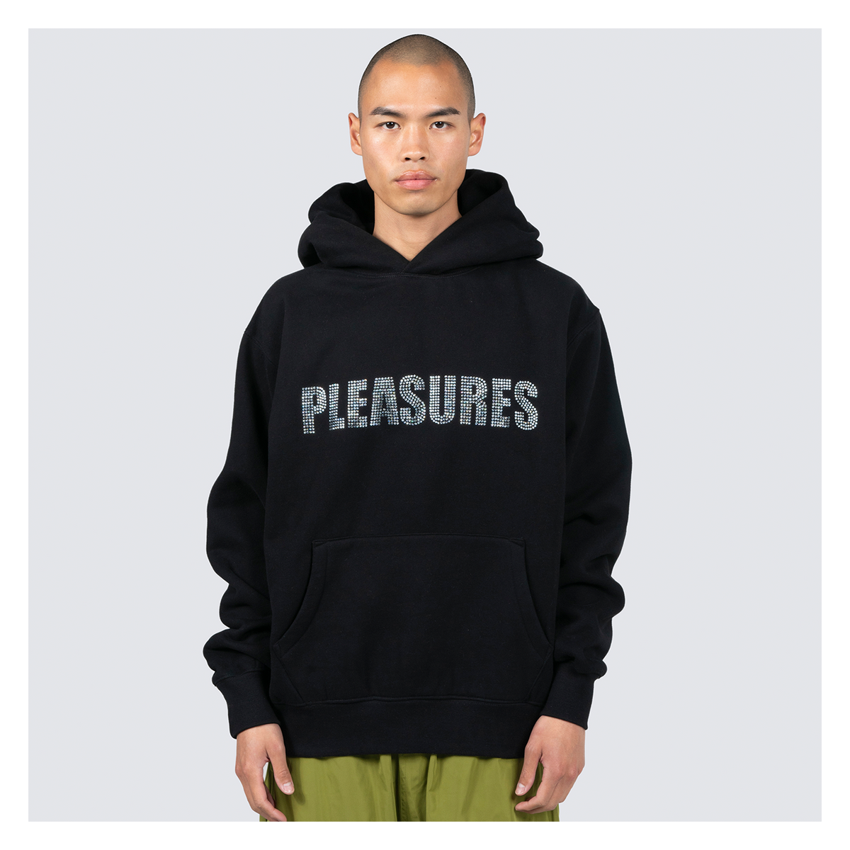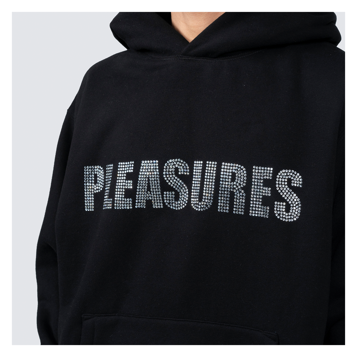 This hoodie from Pleasures is cut from cotton blend fleece to a relaxed fit, and features a rhinestone studded logo graphic application.
