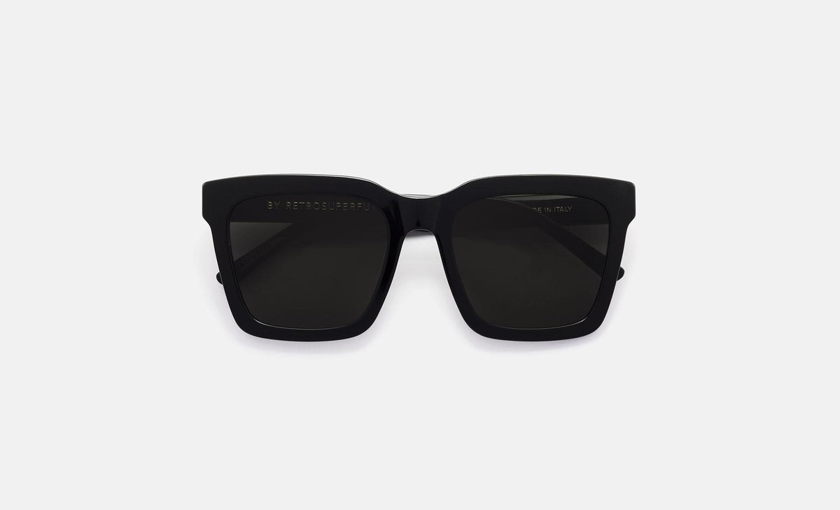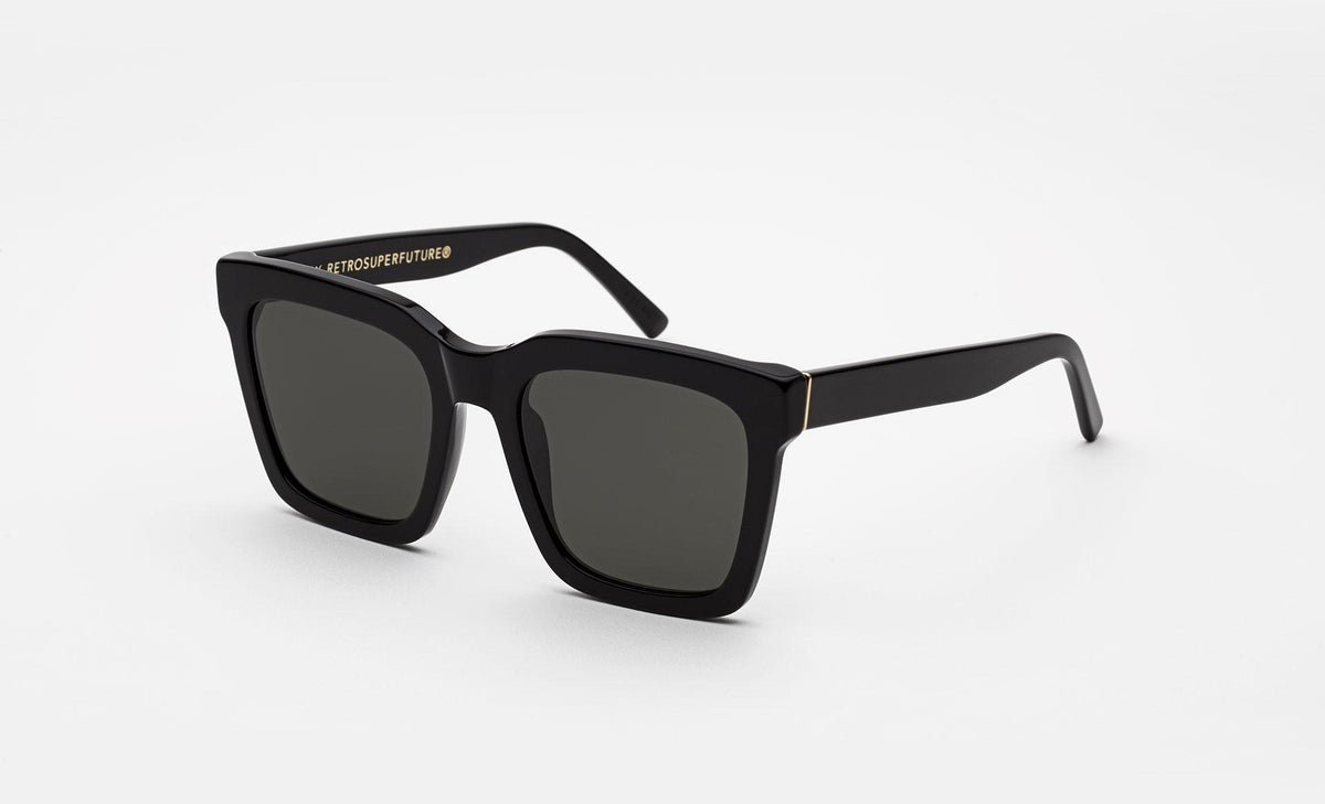 Aalto is a playful yet classic interpretation of the oversized, squared silhouette. The model is characterised by a thick acetate construction with an angular frontal piece and sturdy nose-bridge. This version features a glossy black acetate and dark grey lenses. The box contains a semi-hard case and a cleaning cloth.