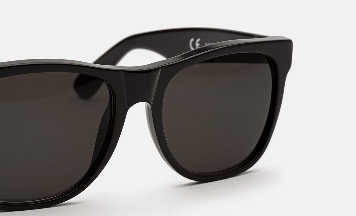 The Classic is one of RSF's oldest yet most universally adored silhouettes. A simple, unpretentious and classy design—with soft curves, straight lines, comfortable bridge and delicate detailing—was matched with a smart, shiny black acetate for a model that fits all needs and styles. The Classic sports lenses by ZEISS in black. The box contains a soft case and a cleaning cloth.