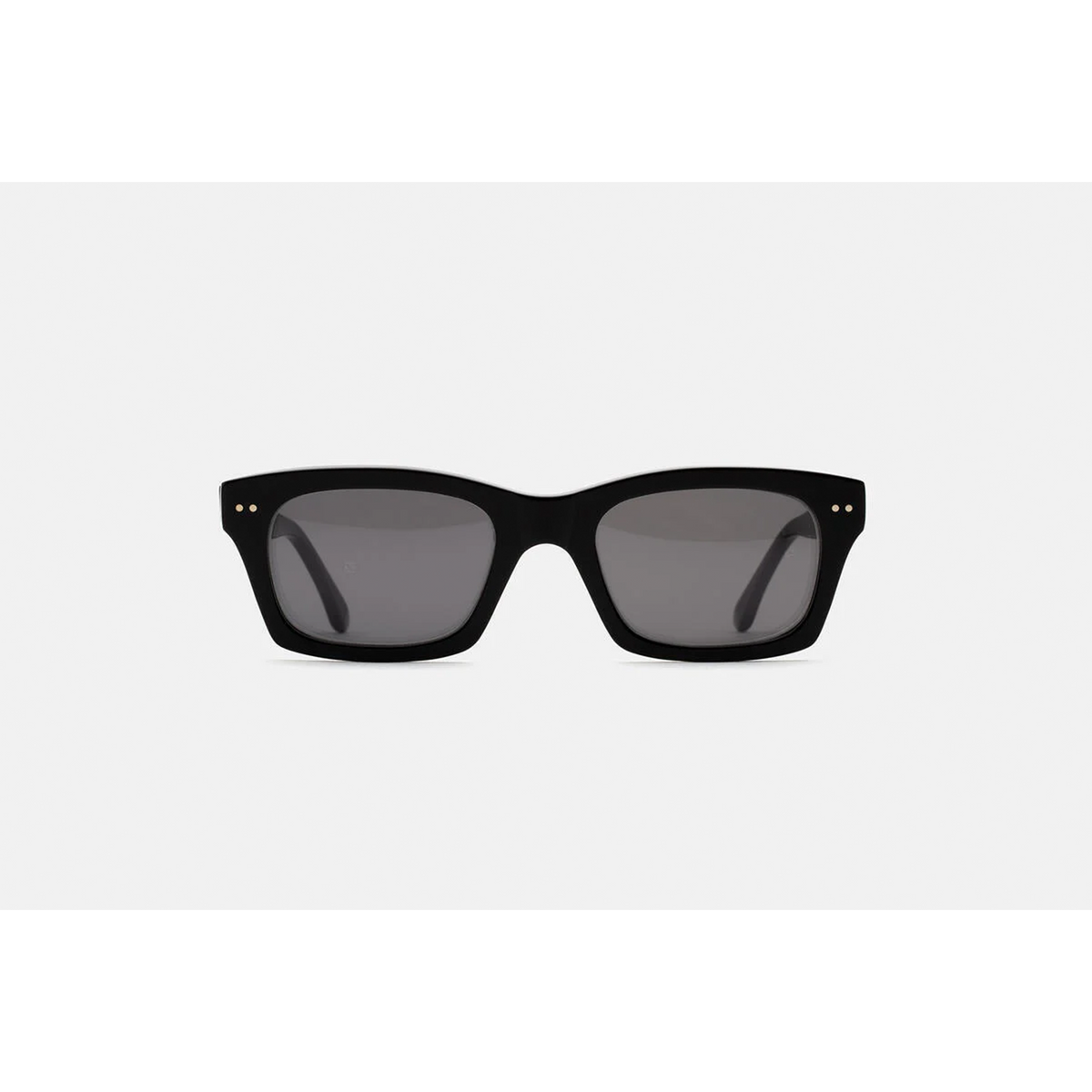 Affari is an essential piece of eyewear conceived as an everyday staple, yet with a distinct street edge. Its carefully carved solid frame, features a comfortable nose saddle and sturdy acetate rims allows this shape to be well suited both for more formal everyday style as well as a casual urban approach. This model comes in a shiny black acetate.