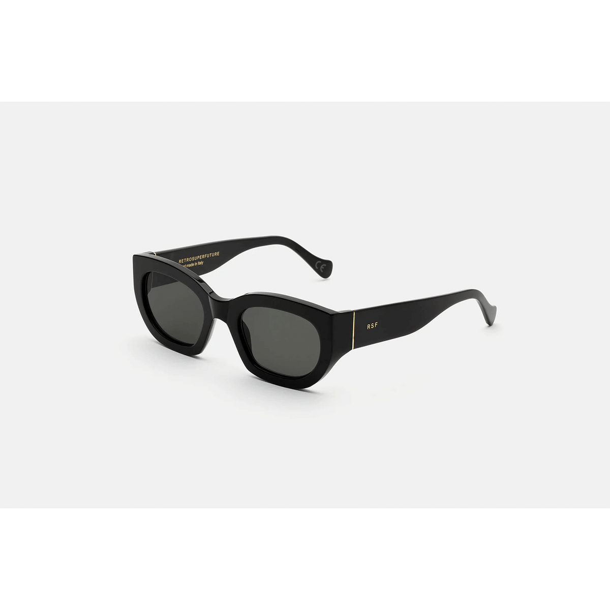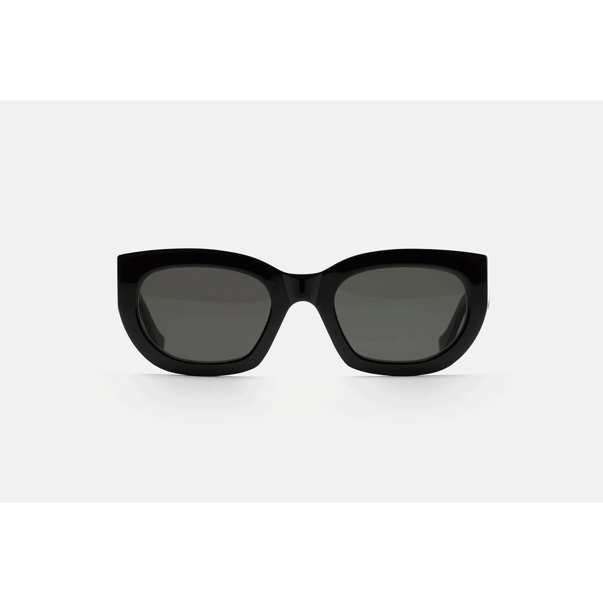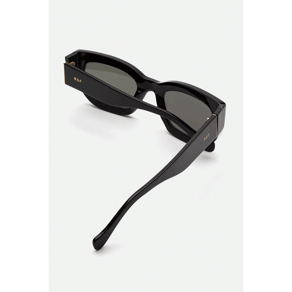 Eyewear design that transcends seasonal trends, capturing that sharp, timeless elegance with RSF’s thick acetate rims and a playful flair. Alva crosses over from the sunny Riviera to the busy streets of our cities. Day and night. Its angular temples and fresh design balances the rounded appeal of its broad lenses. This version comes in shiny black acetate with matching lenses.