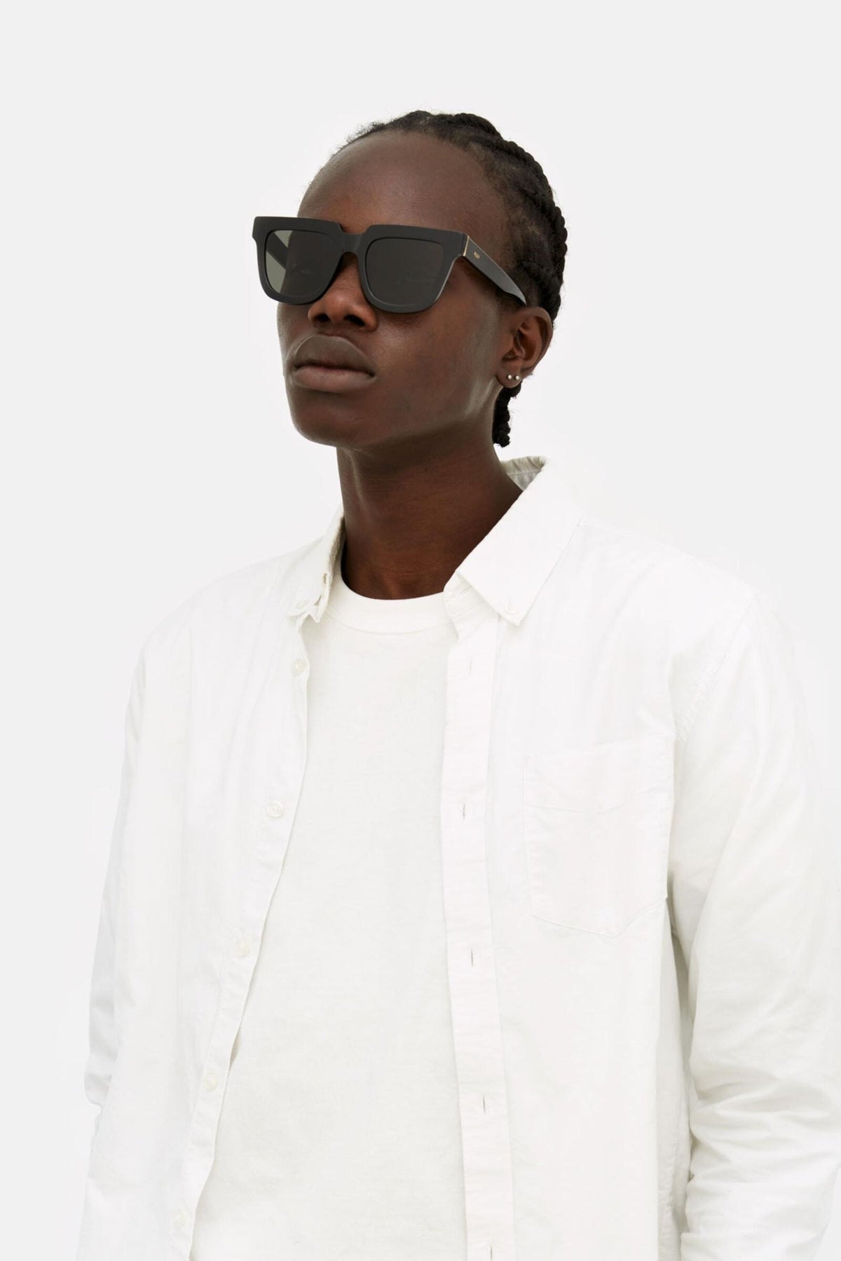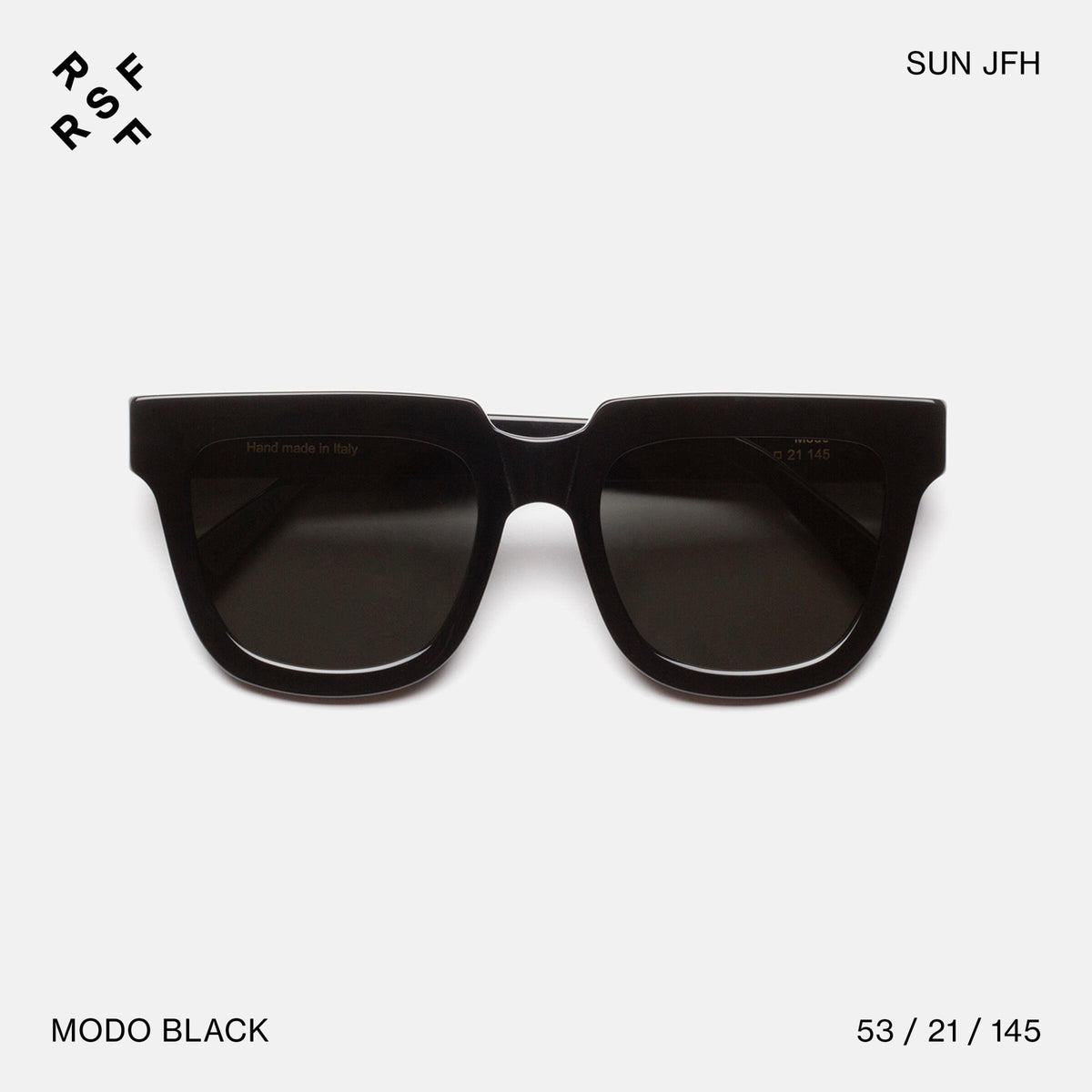 Modo is a chunky oversized piece that captures the essence of Italian glamour: bold and iconic yet casual and essential. Characterised by squared lenses and thick rims this silhouette is all about clean lines and carefully defined detailing. Modo goes back to RSF’s roots – using the exceptional Italian acetate to craft modern sunglasses. This version features an all-black finish with shiny black acetate and matching lenses.