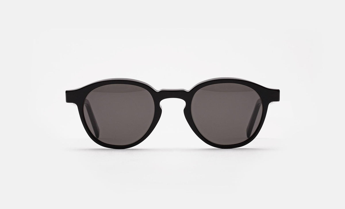 The Warhol is directly characterised by a sinuous, rounded frame with pear-shaped lenses. A gloss black acetate, matched with precise detailing, results in an utterly refined model. The Warhol Black sports flat glass lenses by Barberini in dark grey. The box contains a semi-hard case and a cleaning cloth.