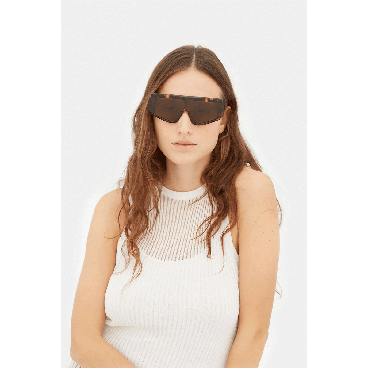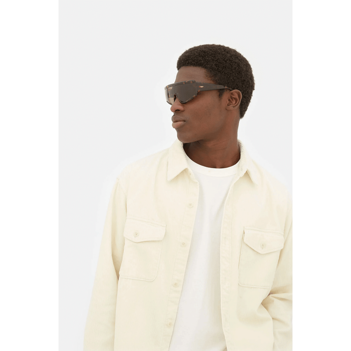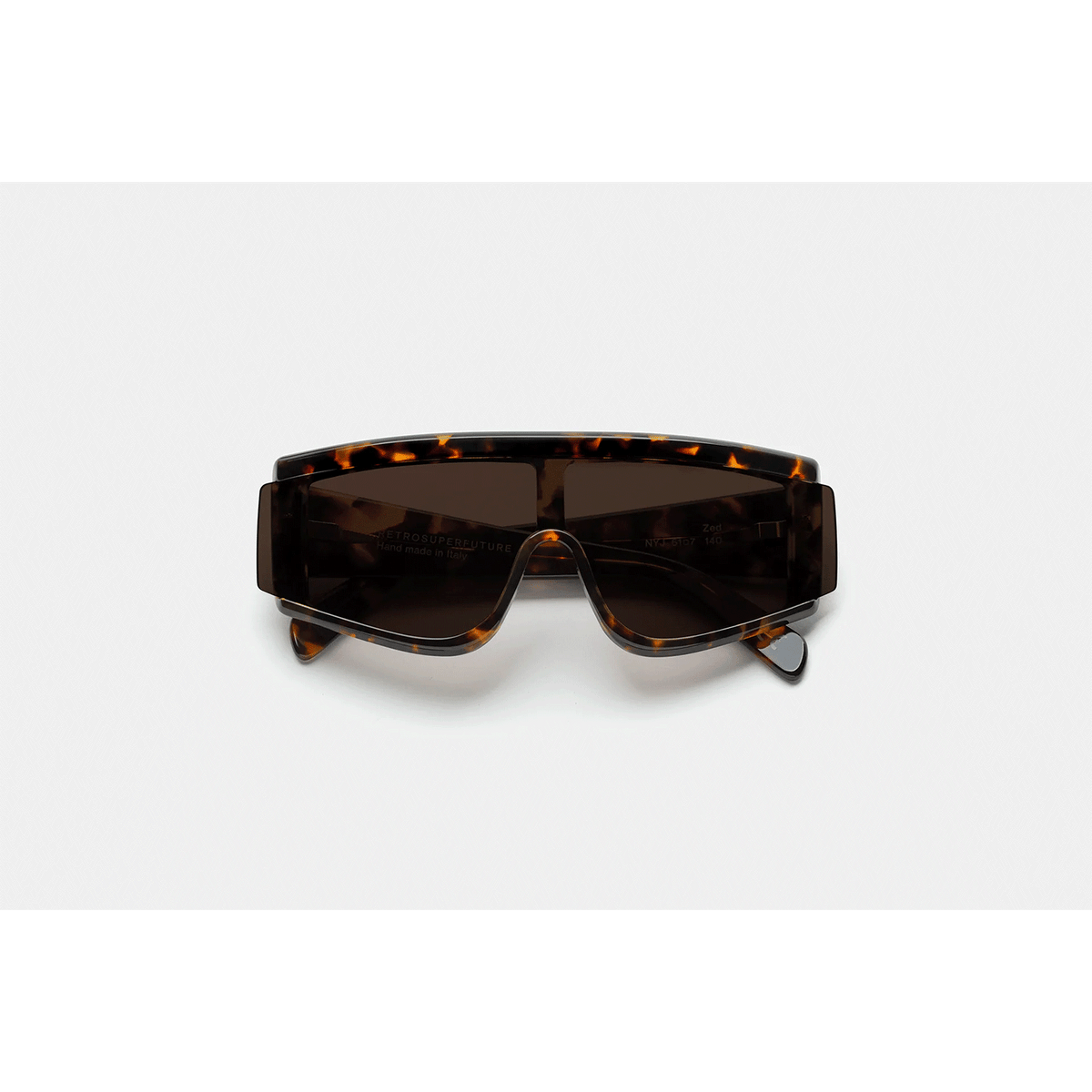 ZED is a fast-riding, forward-looking, fluid silhouette that sits at the intersection of urban lifestyle and high-tech sportswear. Conceived as one of RSF’s first shields in the mid-2010s, ZED has been updated with a sharp new identity. Characterised by a thick acetate construction, whose crafted structure reveals both soft rounded corners as well as precise angles, embraces the single lens tightly in place. A sharp detail: the geometric extended lens on the exterior of the frontal frame. This version comes in a vibrant Havana acetate with brown tinted lenses.