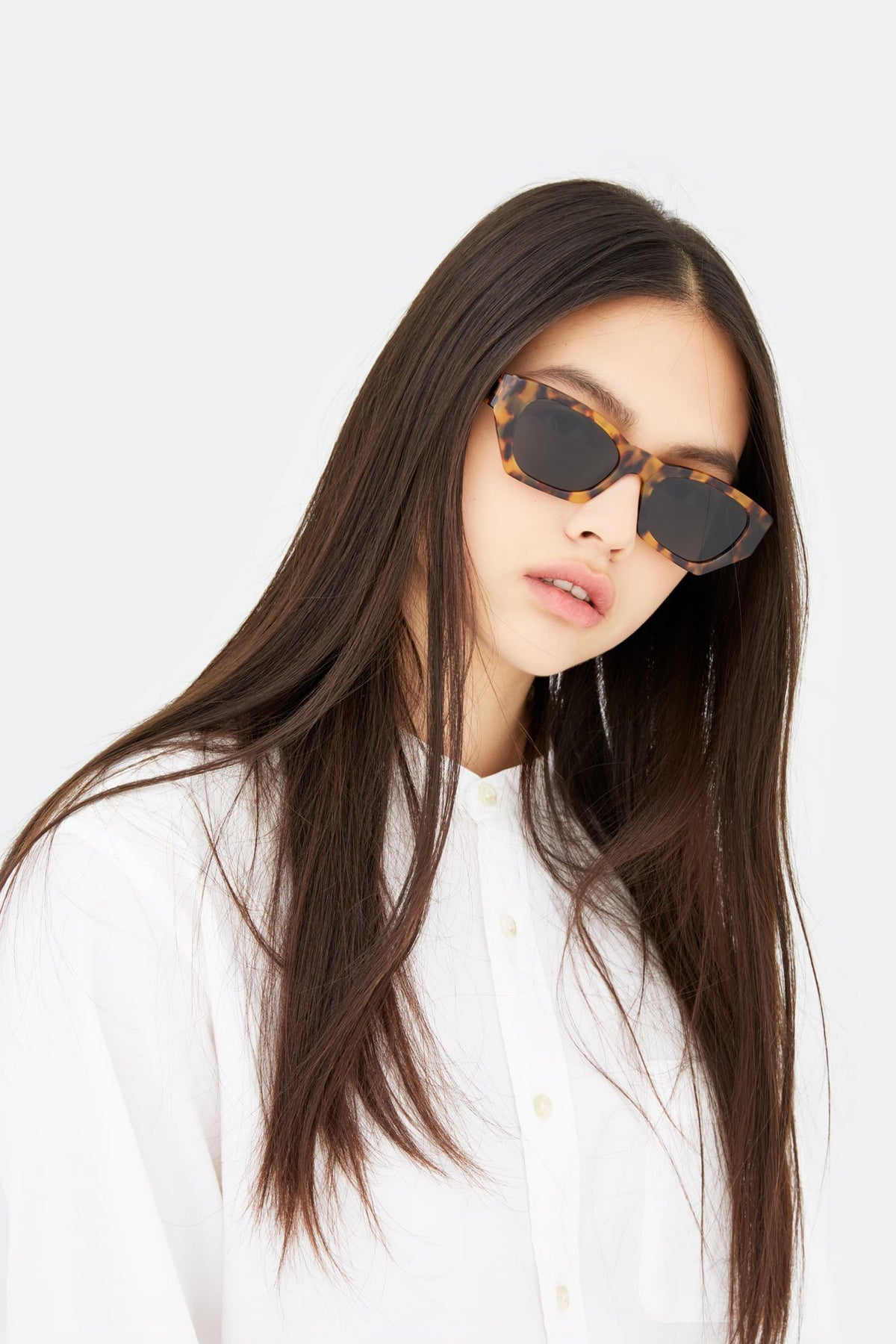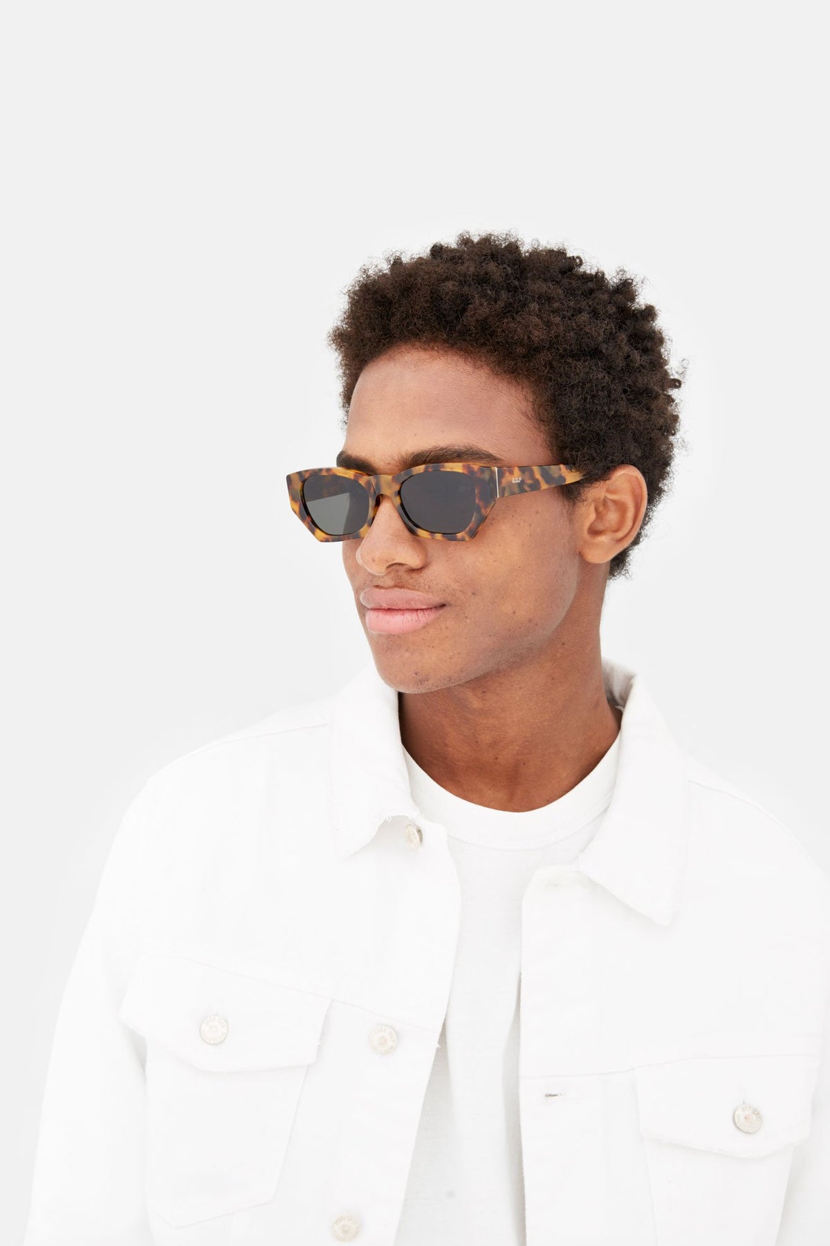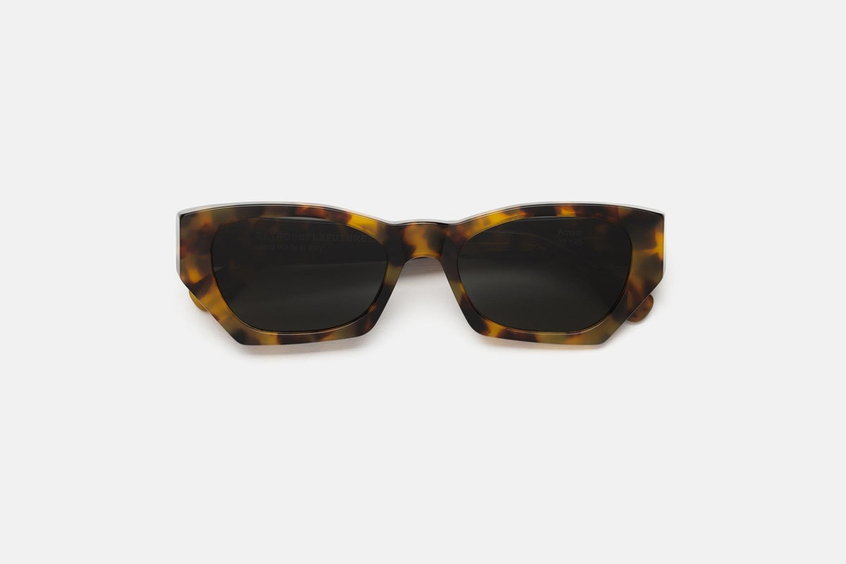 A sharp contemporary model, Amata is a cutting-edge frame characterised by its unique sleek geometric outline. An edgy version of timeless 1960s frames, the model’s fast-riding silhouette features slanted rims with sturdy temples, straight lines and a bold nose-bridge. This version of Amata comes in a spotted Havana acetate and black lenses. The box contains a semi-hard case and a cleaning cloth.
