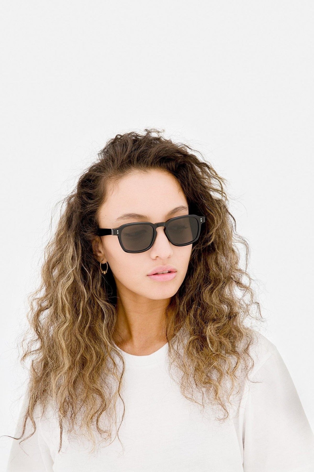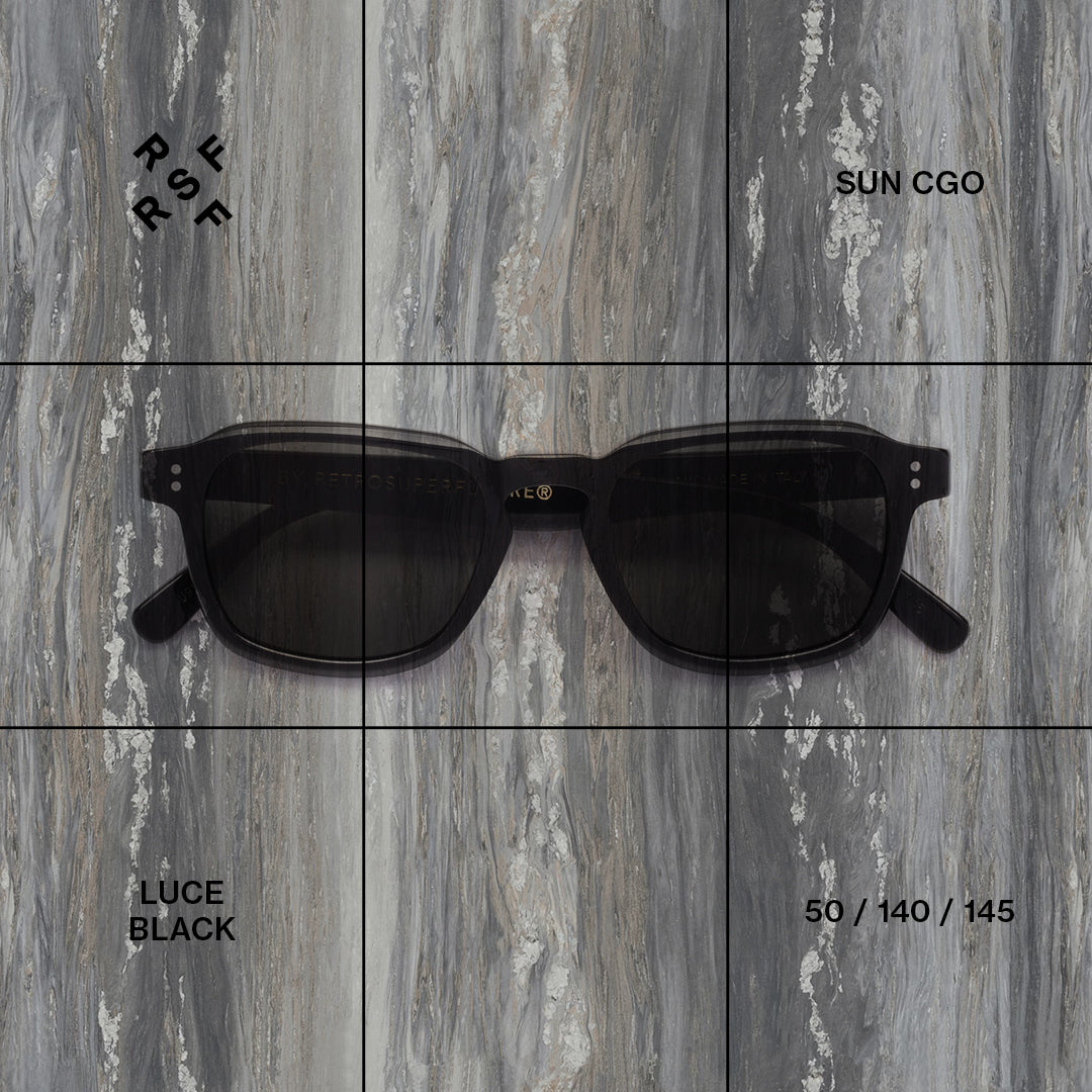 Luce is an iconic silhouette that matches vintage references with a street edge. Characterised by a wide horizontal profile, with sturdy temple tips, thick rims and curved upper lines, Luce is a sharp update of classic everyday frames. This model features a shiny black acetate with black lenses The box contains a semi-hard case and a cleaning cloth.