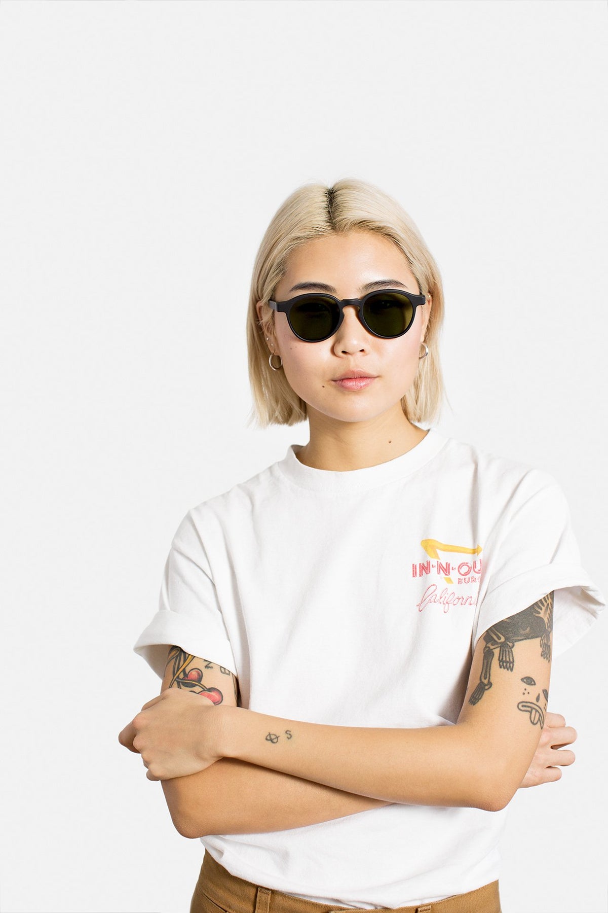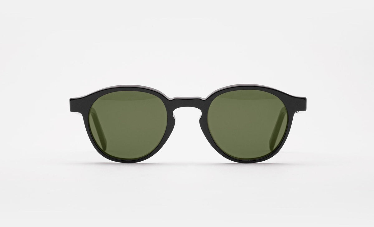 The Warhol is directly characterised by a sinuous, rounded frame with pear-shaped lenses. A black matte acetate, matched with precise detailing, results in an utterly refined model. The Warhol Black Matte sports flat glass lenses by Barberini in vintage bottle green. The box contains a semi-hard case and a cleaning cloth.