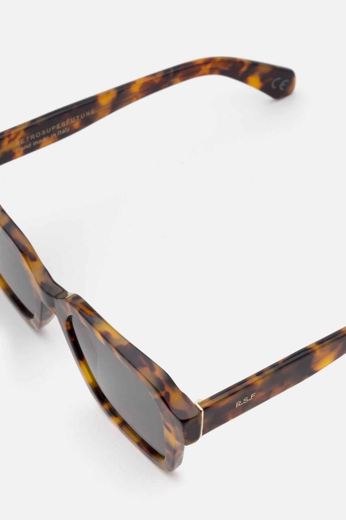 The Vasto is an angular oversized silhouette that reinterprets classic 1970s frames with a contemporary edge. Thick acetate curves characterise this bold shape, carefully sculpted around wide lenses to form a distinct square design. This version of Vasto features black lenses and vibrant Havana acetate. The box contains a semi-hard case and a cleaning cloth.