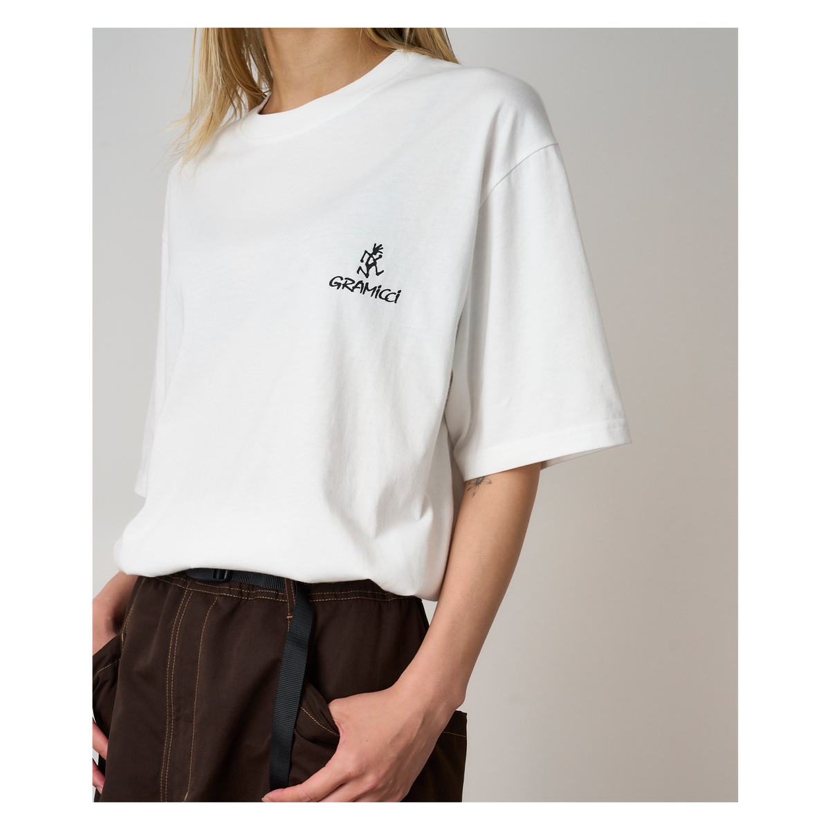 The One Point Logo Tee from Gramicci is crafted from BCI cotton and recycled polyester. It retains that comfortable cotton feeling, while drying quickly, making it a great addition to your outdoor wear. Cut to a relaxed boxy fit and finished with the Gramicci and Running Man logos on the left chest.