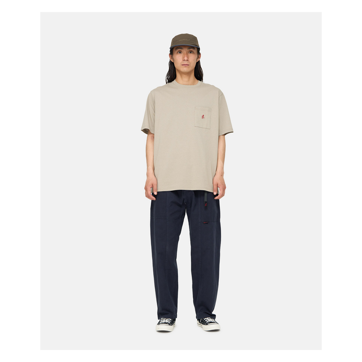 The One Point Tee from Gramicci is crafted from dry-touch organic cotton, and garment dyed for a cool lived in look and feel. Cut to a relaxed boxy fit and finished with a chest pocket featuring an embroidered "Running Man" logo.