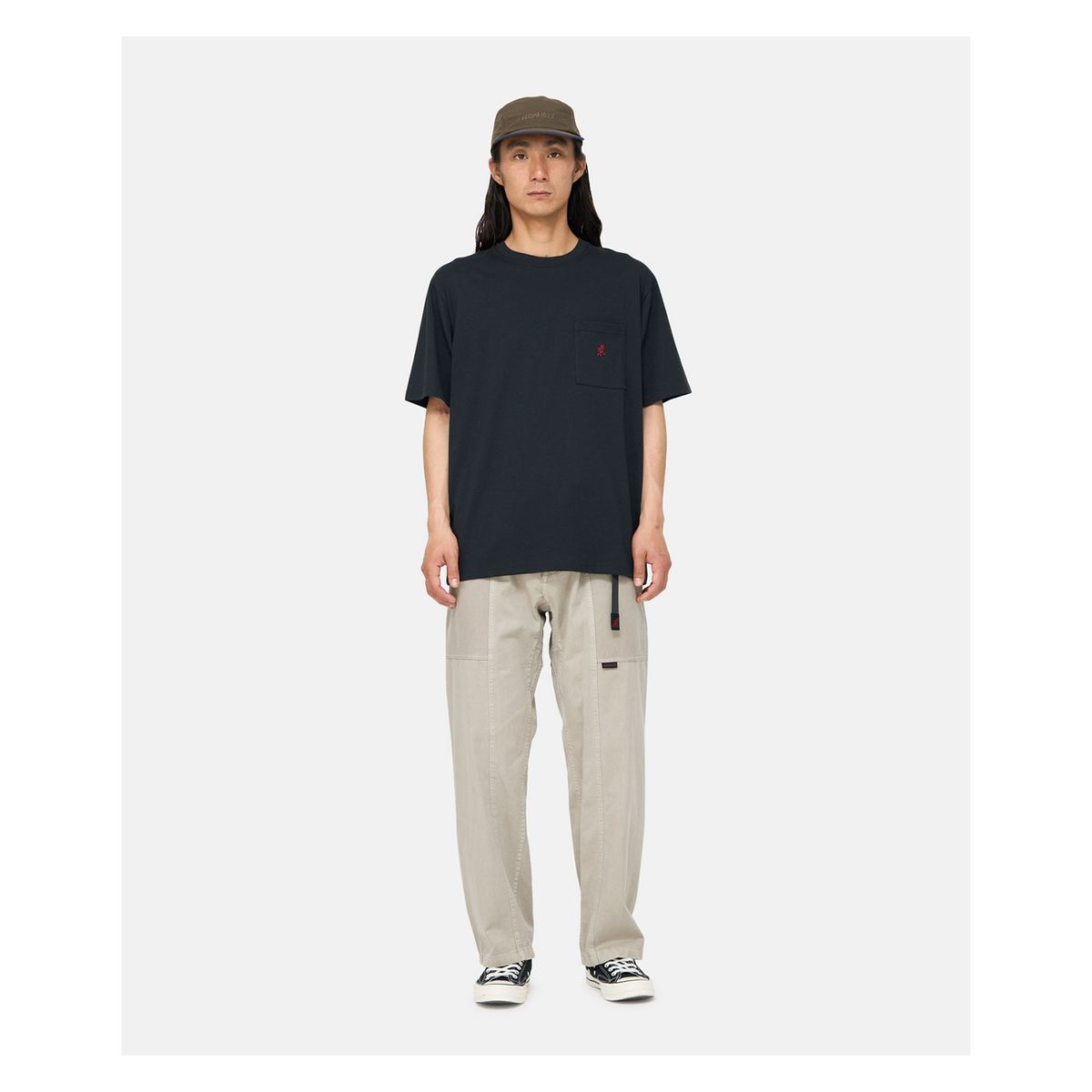 The One Point Tee from Gramicci is crafted from dry-touch organic cotton, and garment dyed for a cool lived in look and feel. Cut to a relaxed boxy fit and finished with a chest pocket featuring an embroidered "Running Man" logo.