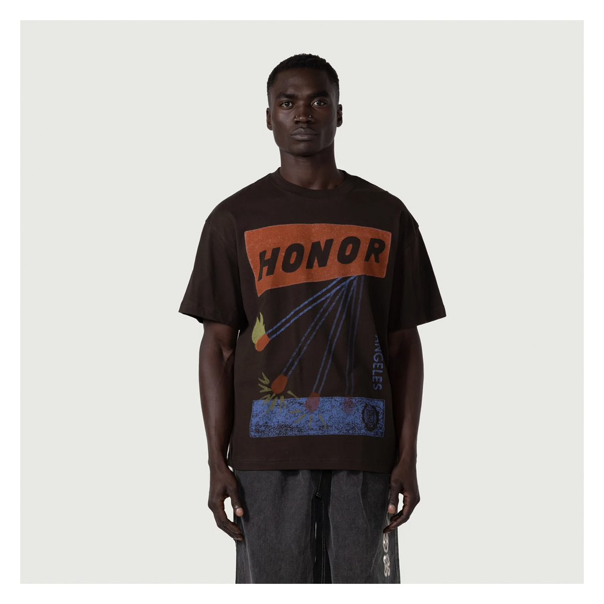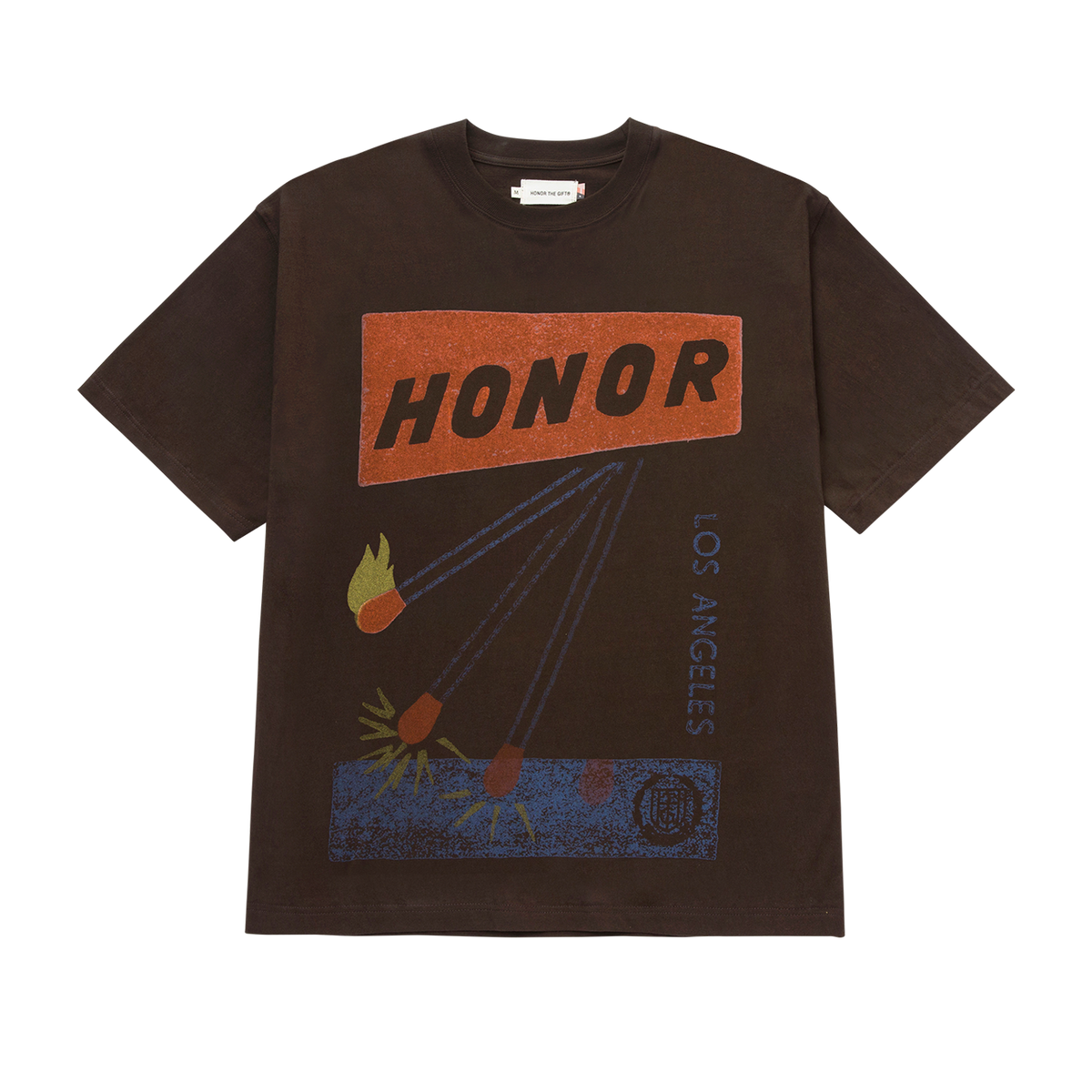 The Match Box Tee by Honor the Gift is a premium short sleeve tee, cut to a custom boxy fit and garment washed for a vintage look and feel. Features screen printed graphics on the front with a vintage style application.