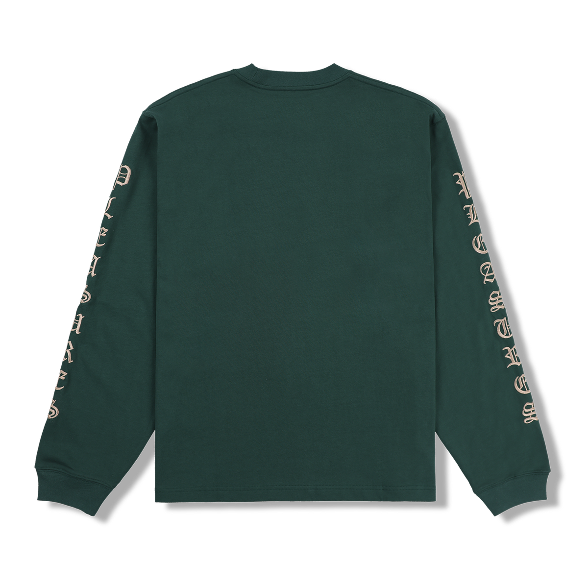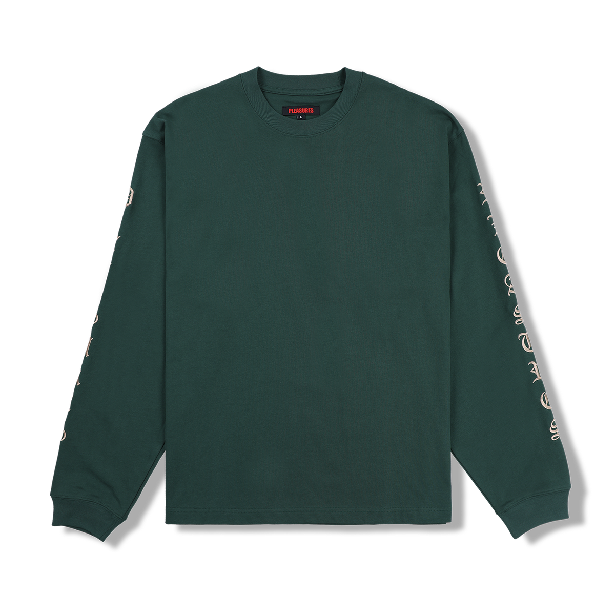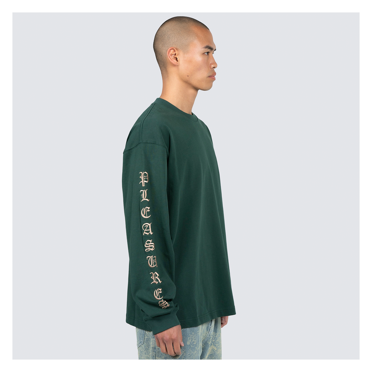 This premium t-shirt from Pleasures has been crafted from a heavyweight cotton jersey, and cut to a custom boxy fit. It features embroidered logo graphics in an Old English font down both sleeves.
