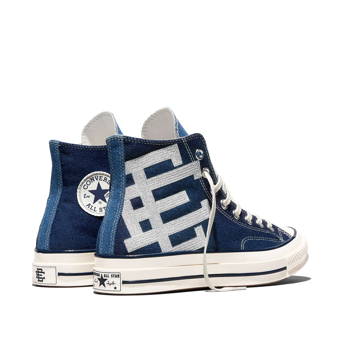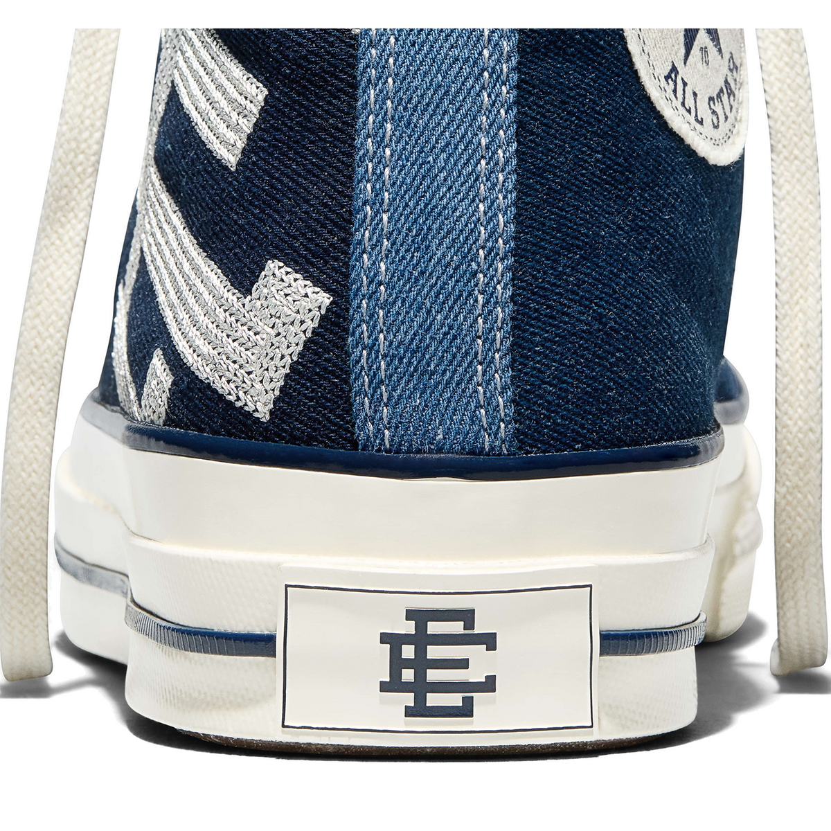 Reworked through the lens of Eric Emanuel, this Converse Chuck 70 sharpens sport heritage with a street-first edge. Denim uppers add texture without disrupting the silhouette’s DNA. OrthoLite cushioning and a durable rubber outsole anchor it in comfort and function.
