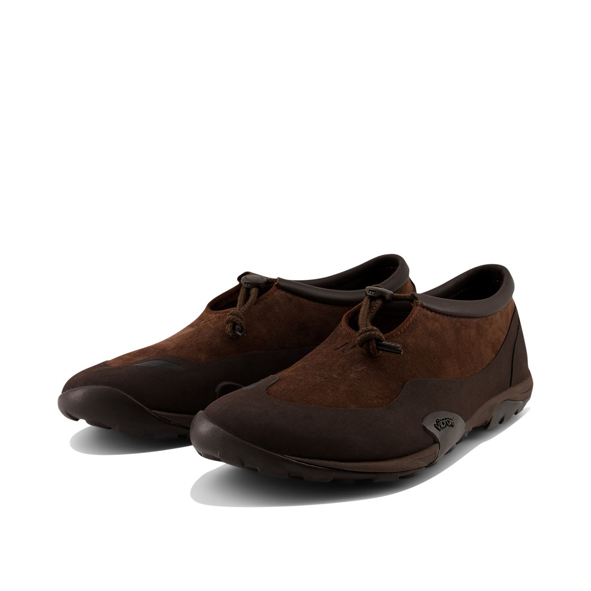 The distinctive rounded lug outsole and a rubber mudguard provide a trail running-inspired base, paired with an leather-lined nubuck upper, for a progressive take on minimalist, low-profile design.