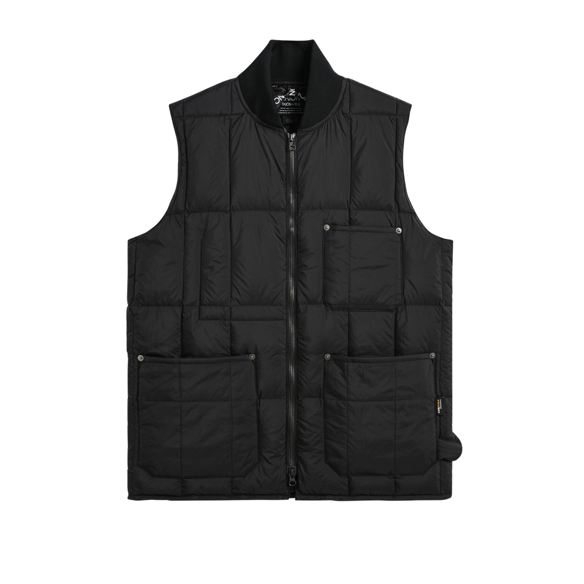 This Rib-necked work vest is crafted from Cordura® nylon with a rectangular-baffled quilted down fill, making it both warm and lightweight, as well as water repellant. It features multiple riveted pockets and a hammer-loop on the back left for a stylish workwear look.